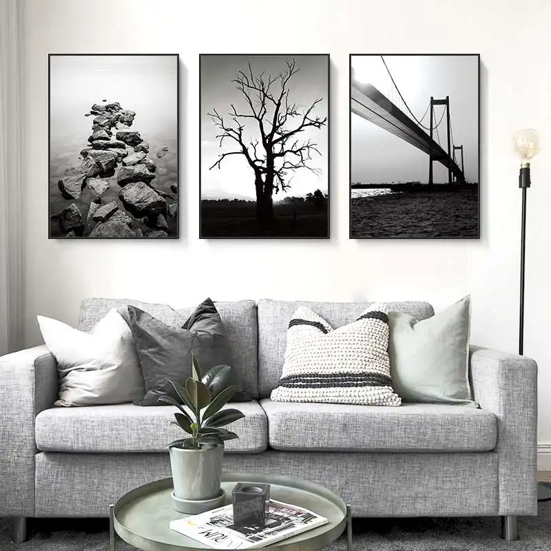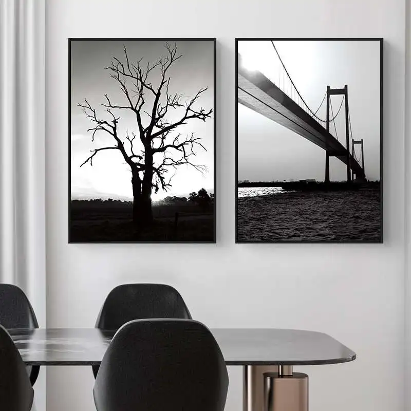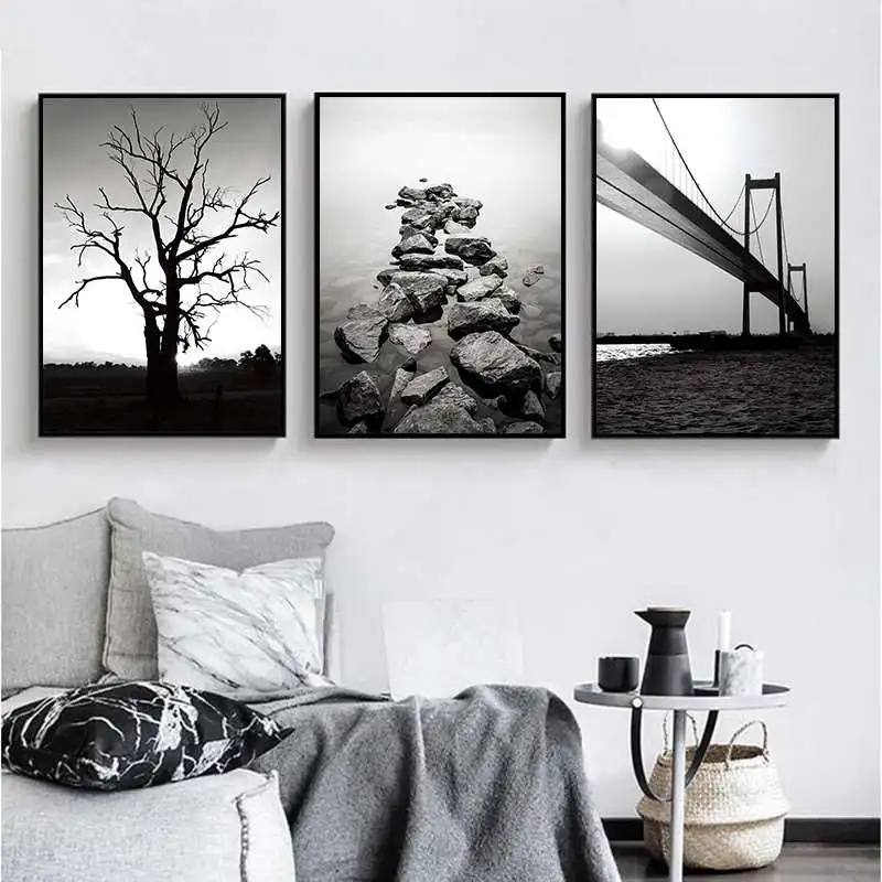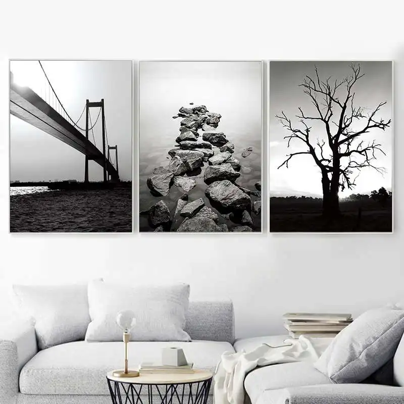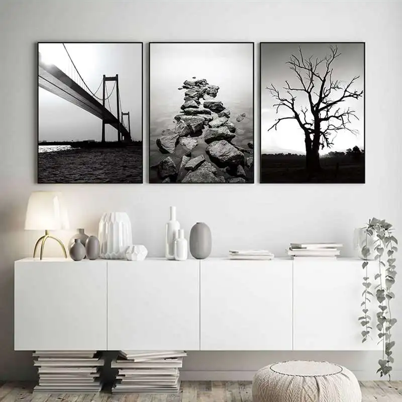 Черно-белый камень моста на дереве mnimalism, художественная живопись на холсте, печатный плакат, Настенная картина для гостиной, Современный домашний декор YT52