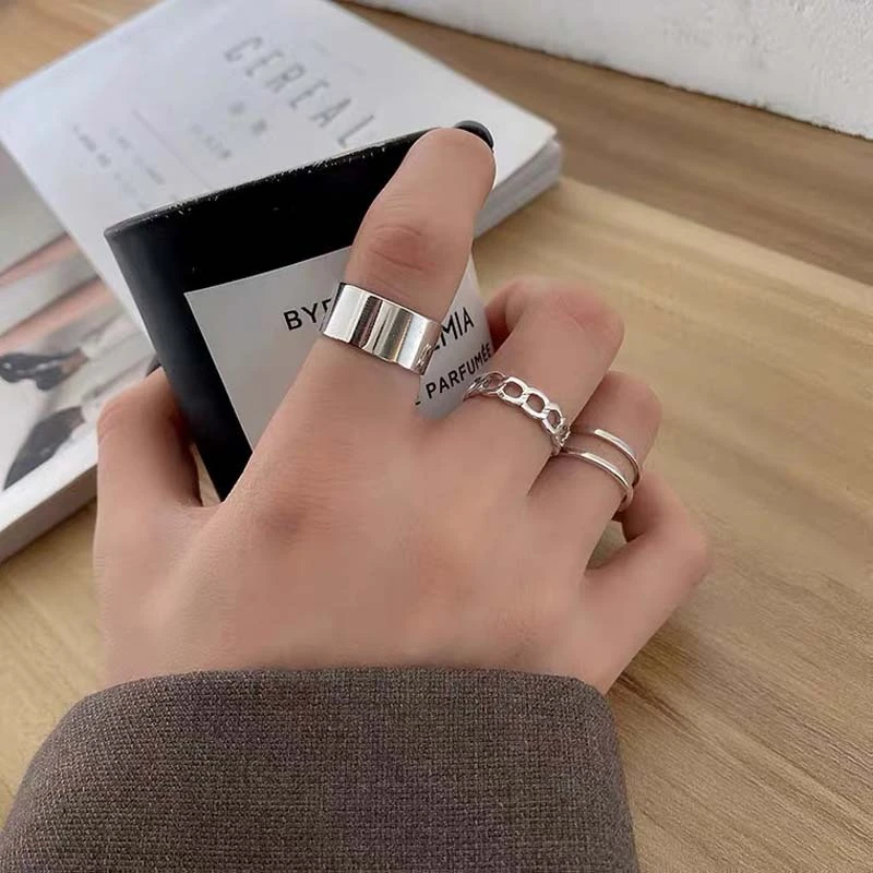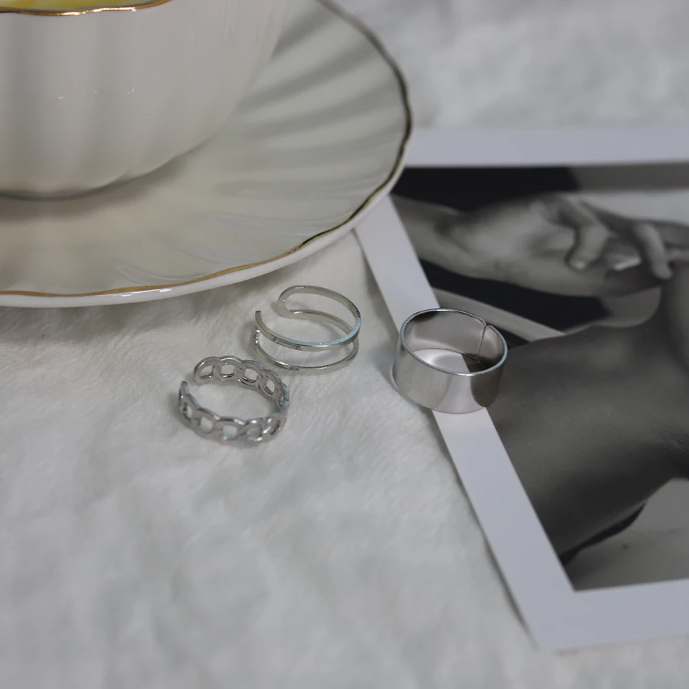 Тренд серебряного цвета кольца для женщин модный набор золотого мет...