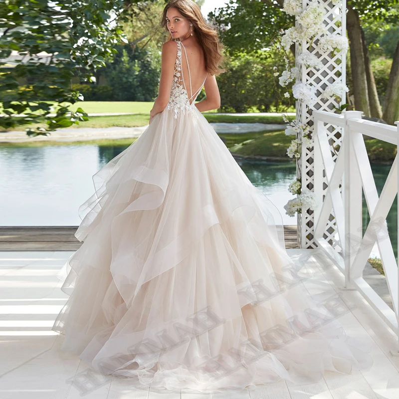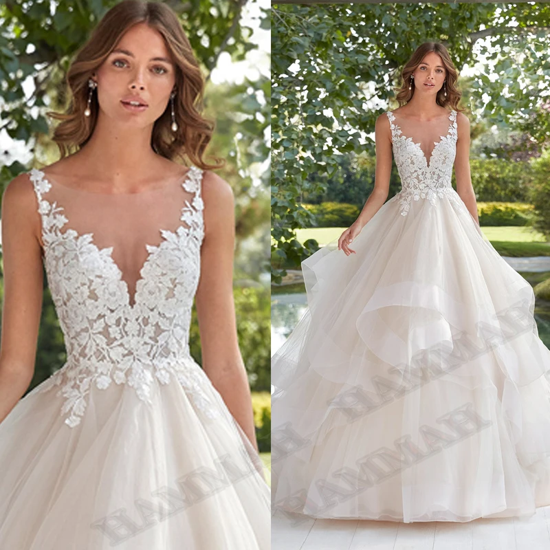 Пышное Бальное Платье HAMMAH, многоярусные Свадебные платья для невесты, свадебные платья с аппликацией и открытой спиной, свадебные платья, вечернее платье для невесты, женское платье