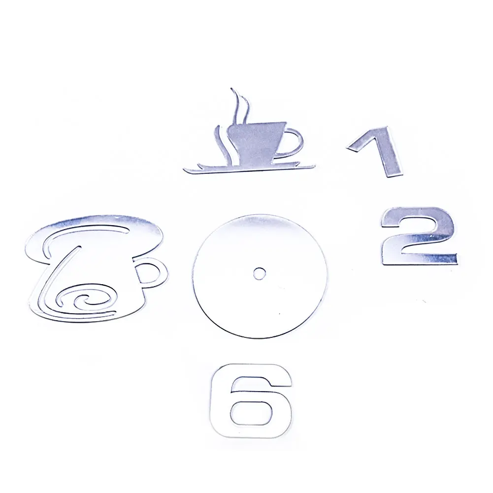 Настенные часы для кухни, бесшумные 3D чашки для кофе, домашний аналоговый настенный акриловый зеркальный Декор сделай сам, современные самоклеящиеся