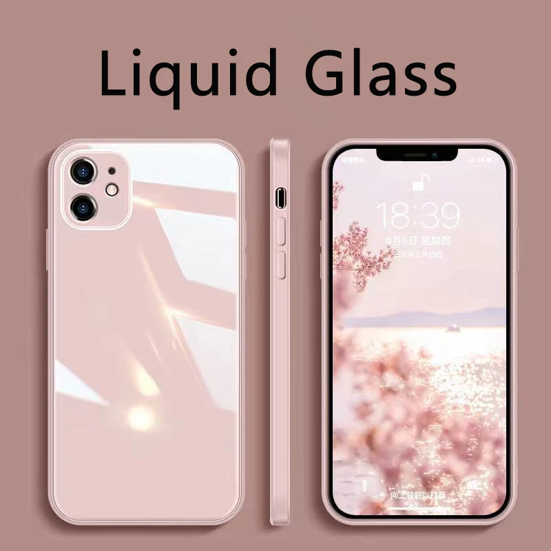 Чехол из жидкого стекла с прямыми краями для телефона iPhone 12 11 ...