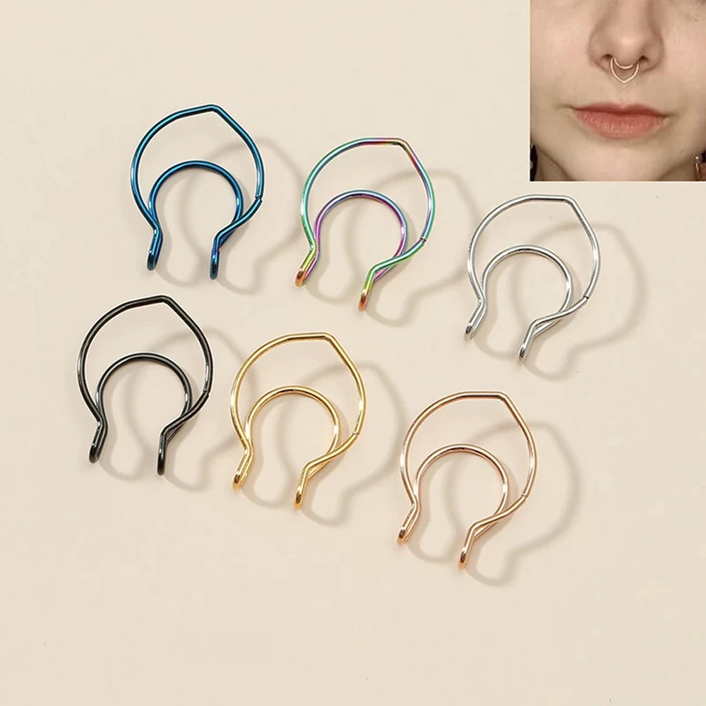 Искусственная перегородка для пирсинга из нержавеющей стали, 6 цветов, без прокола, для носа