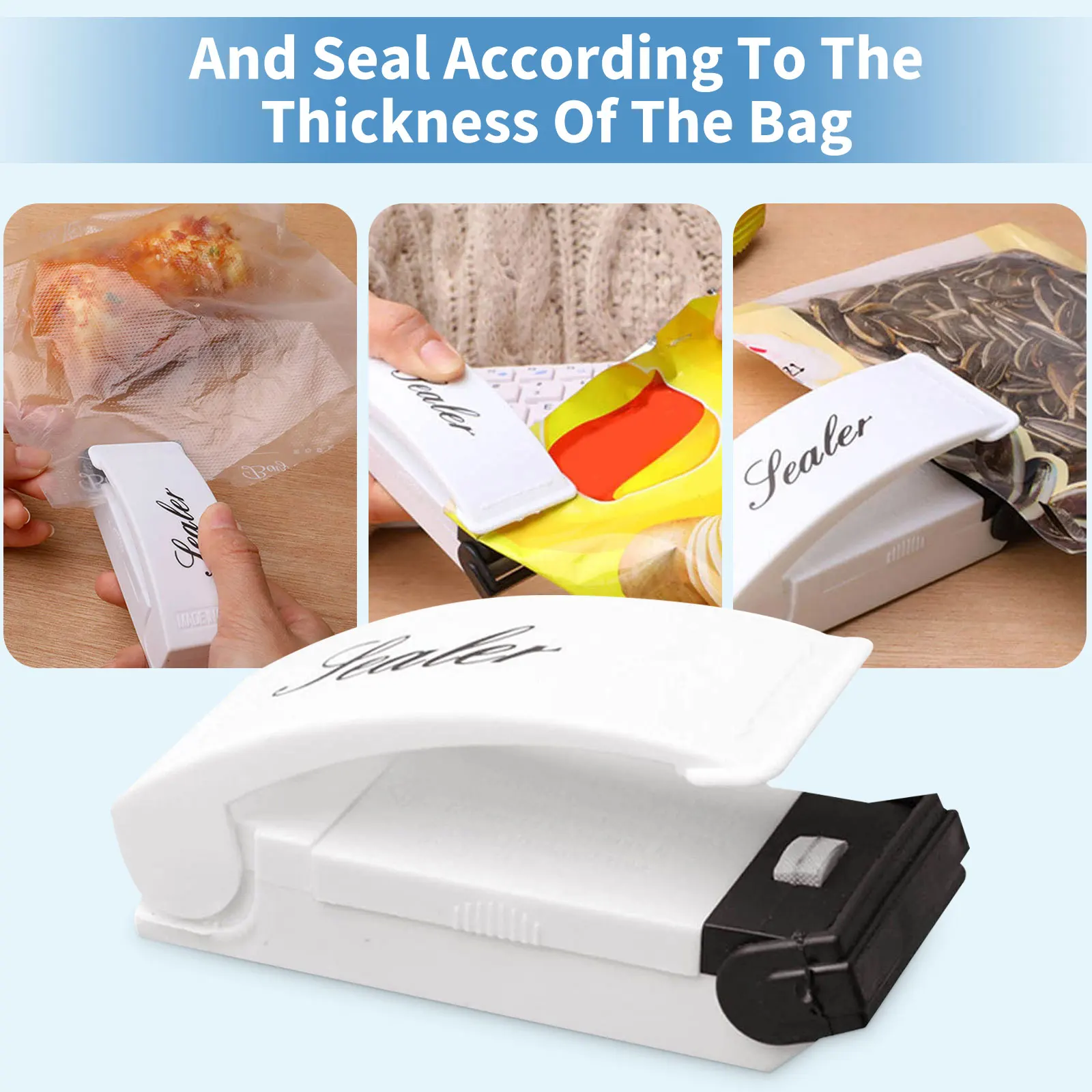 1. Легко использовать-предварительно Нагрейте крышку, нажмите на нее в течение 5 секунд перед использованием, а затем проскользните по краю любого мешка, чтобы запечатать от утечки воздуха.