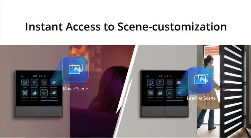 Хотите конкретную настройку для поддержания температуры и яркости комнаты, когда вы работаете, спите или просто смотрите фильм?NSPanel позволяет задать конкретные условия для различных выбранных сцен, чтобы вы могли запускать их в любое время. Это означает, что вы можете переключиться из режима просмотра фильмов в режим выхода одним нажатием, чтобы мгновенно активировать все ваши предпочтения для сцены.