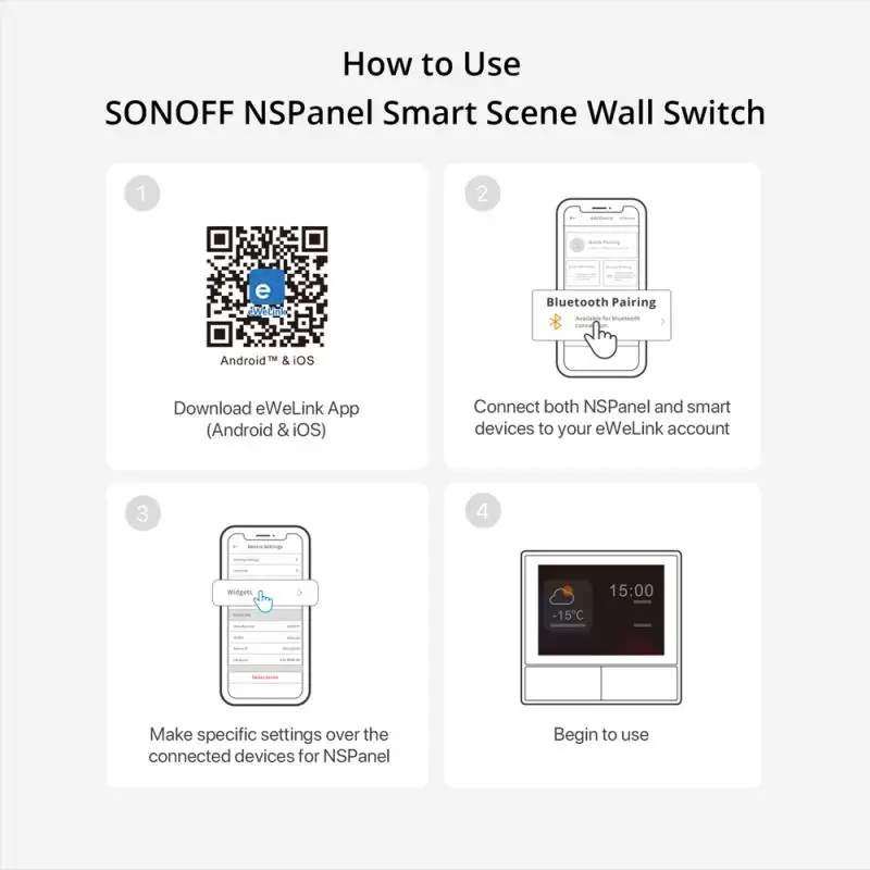 С NSPanel прекрасно работает с приложением eWeLink, ваш опыт умного дома будет значительно увеличен! Контроль над бытовой техникой больше не ограничен временем и пространством. Помимо прямого управления на панели, вы также можете дистанционно контролировать и контролировать все аспекты вашего умного дома через приложение.