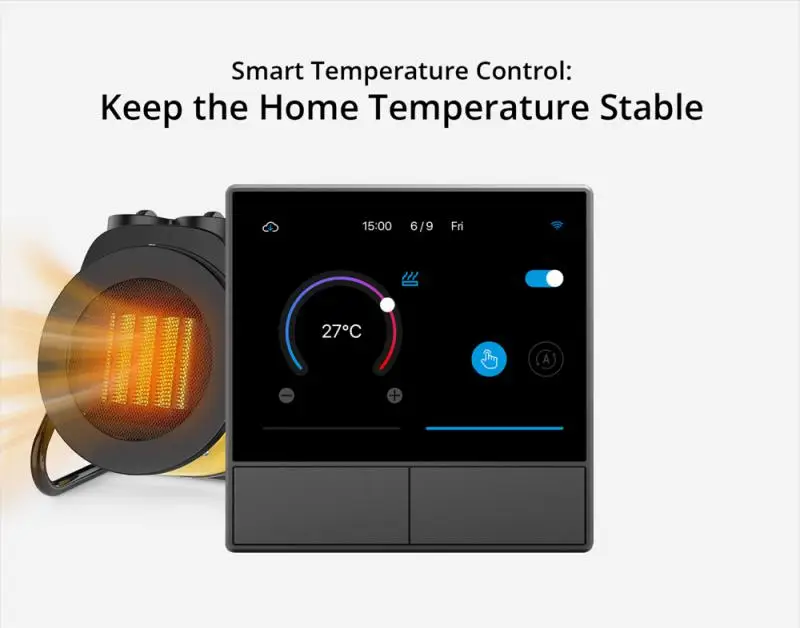 Ручной режим термостата позволяет регулировать температуру в любое время, что подходит вам и держать его равномерным и стабильным, в то время как его автоматический режим термостата предоставляет вам другие варианты. Вы можете устанавливать различные температуры в помещении в разное время суток, И NSPanel автоматически запускает нагревательные или охлаждающие устройства, чтобы сохранить температуру в помещении вашего дома в определенной точке в соответствии с вашим расписанием и настройками.