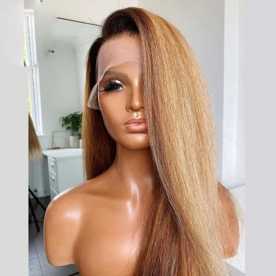 Парики Омбре Honey блонд, прямые, HD 13x 6, с предварительно выщипа...