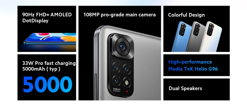 Смартфон Xiaomi Redmi Note 11S, 64 ГБ128 ГБ, Восьмиядерный Helio G96, глобальная версия 33W Pro, быстрая зарядка