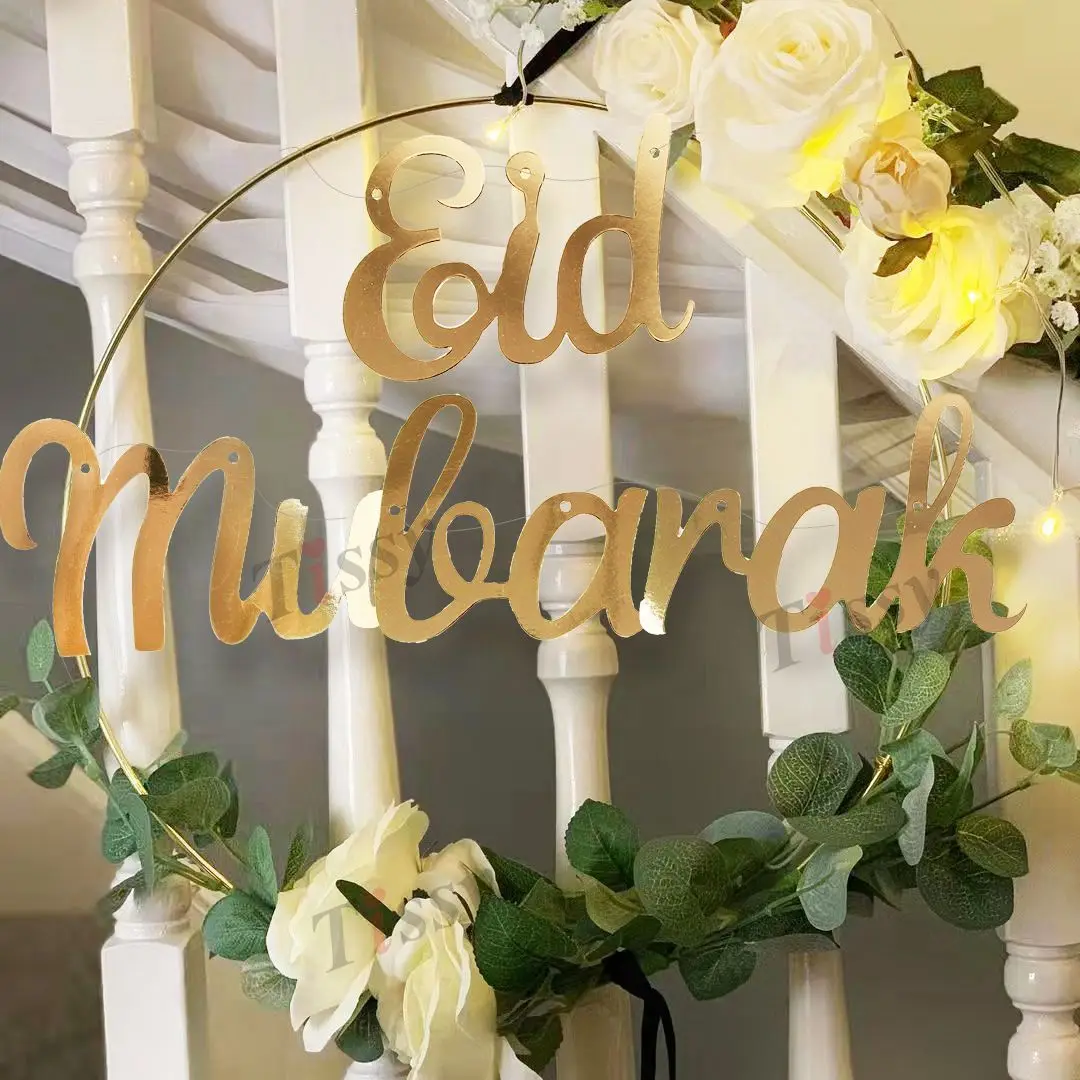 DIY Eid Mubarak, венки с искусственными цветами, листья для Рамадана, кареем, мусульманское украшение для вечерние, домашний декор для стен и дверей