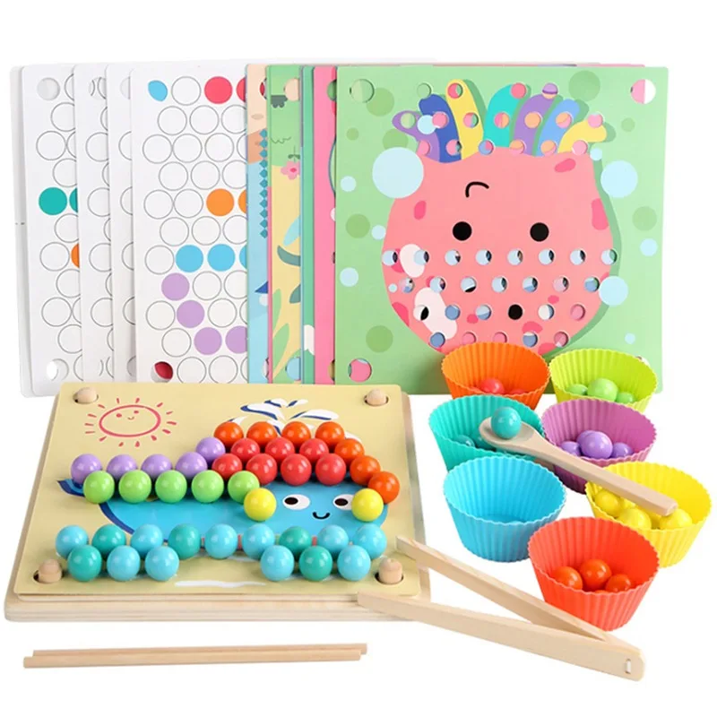 Игра Монтессори с бусинами для детей дошкольного возраста, деревянн...