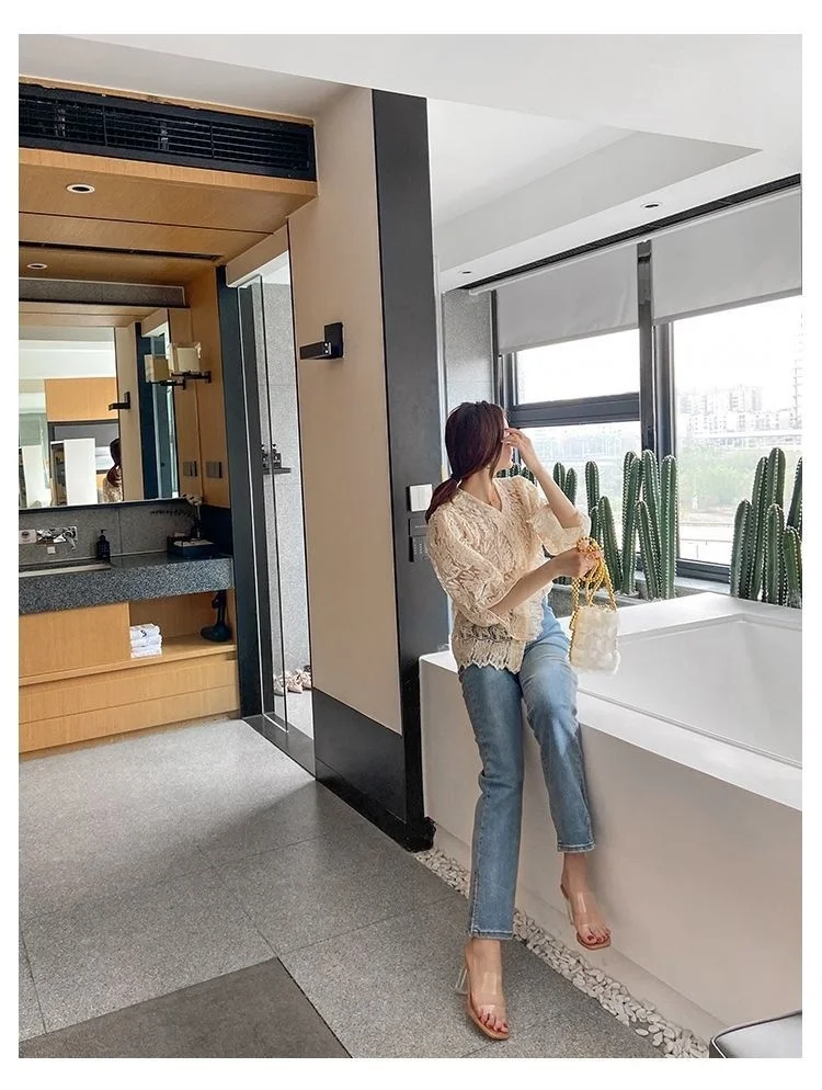Сандалии женские прозрачные, босоножки из сетчатой ткани, на толстом каблуке, большой размер 35-43, 42