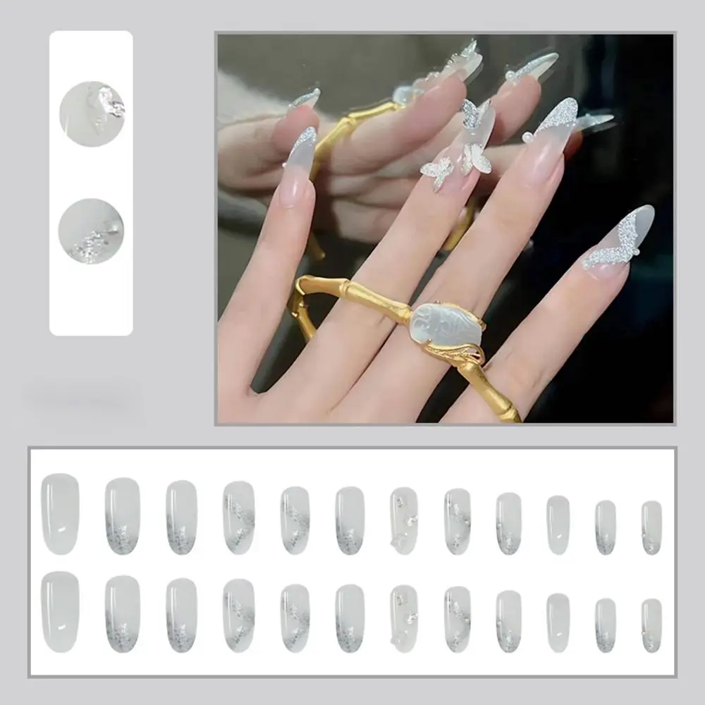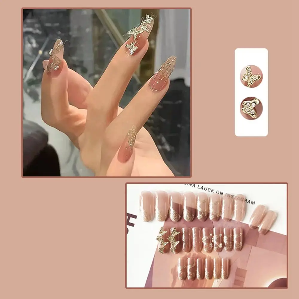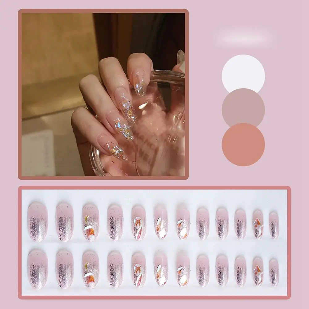 24 шт., съемные накладные ногти, телесные, нежные, блестящие наклад...