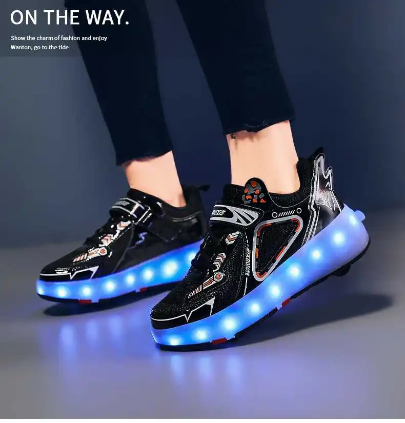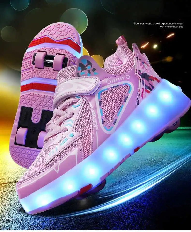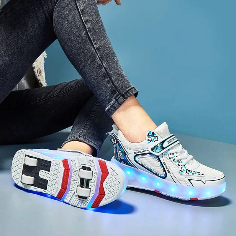 Роликовые коньки, детская обувь на четырех колесах 2022, модные для девочек и мальчиков, детские кроссовки со светодиодной подсветкой, спортивные повседневные ботинки, кроссовки для бега и катания на коньках