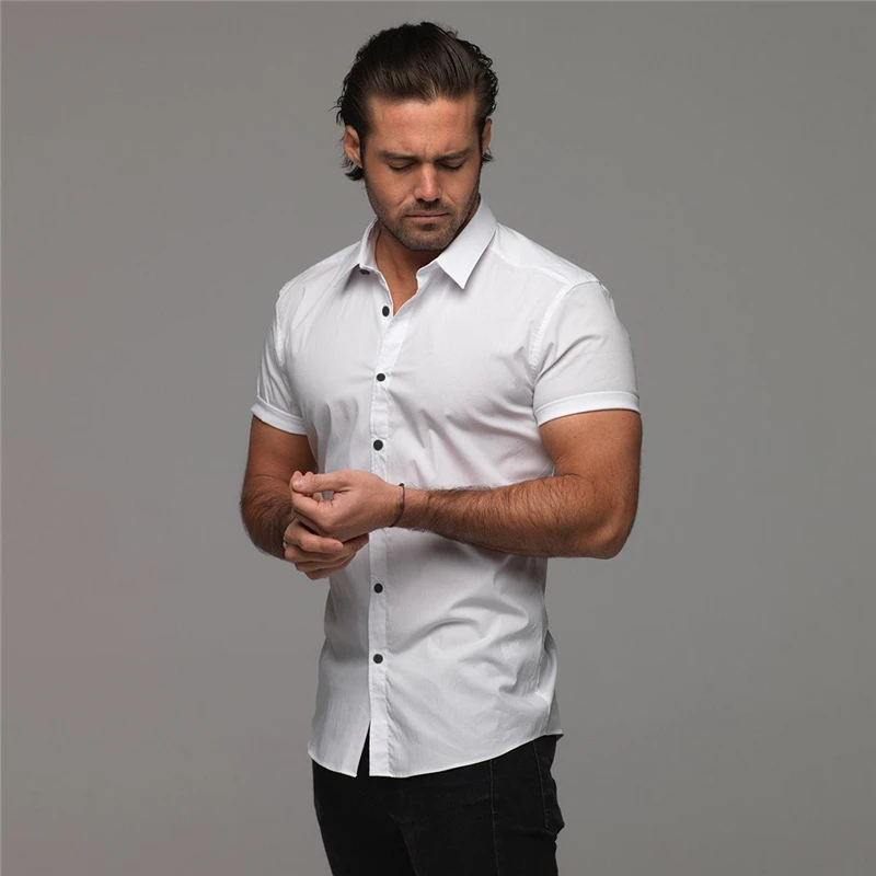 Рубашка мужская для бега, летняя деловая рубашка с коротким рукавом...