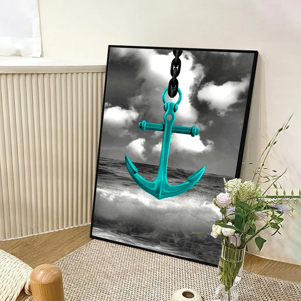 Полноформатнаякруглая алмазная живопись, 5D пейзаж, сделай сам, Алмазная мозаика, лодка, якорь, вышивка крестиком, украшение для дома