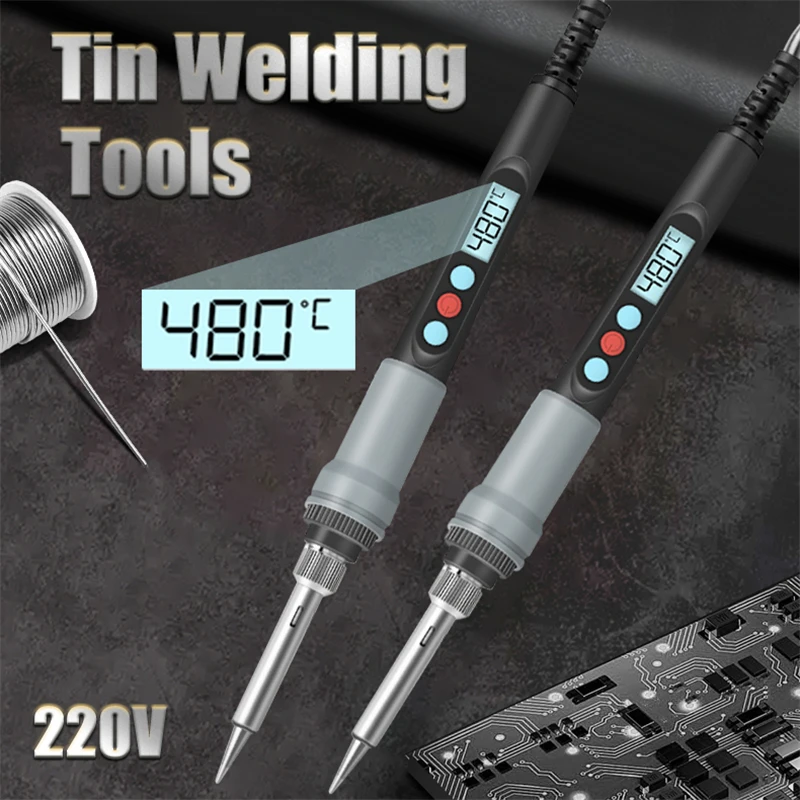 Электрический паяльник с регулируемым светодиодным дисплеем, портативный комплект для быстрой сварки олова и ремонта электроники