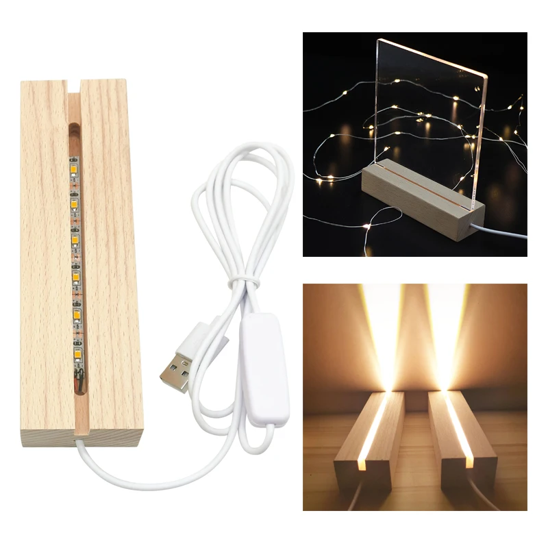 Деревянное основание для светодиодной лампы с USB-кабелем, ночник, ...