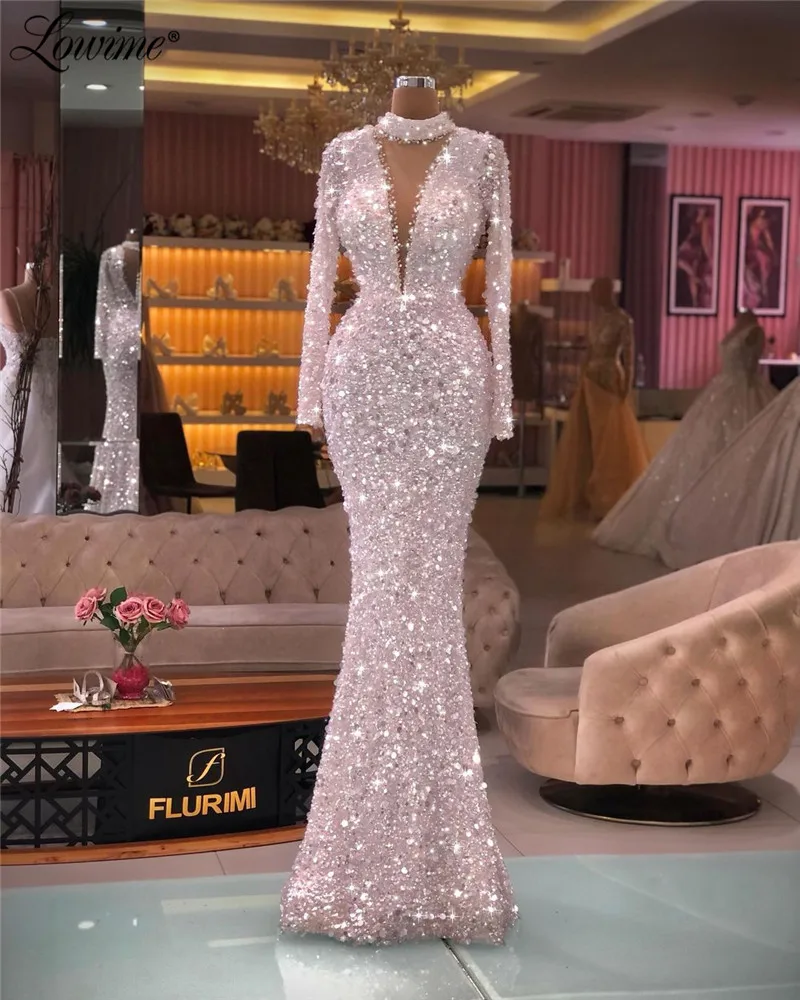 Блестящие вечерние платья-русалки с блестками 2022, розовые вечерние платья с бусинами для свадьбы, Дешевое платье для выпускного вечера с длинным рукавом, платья для вечеринки