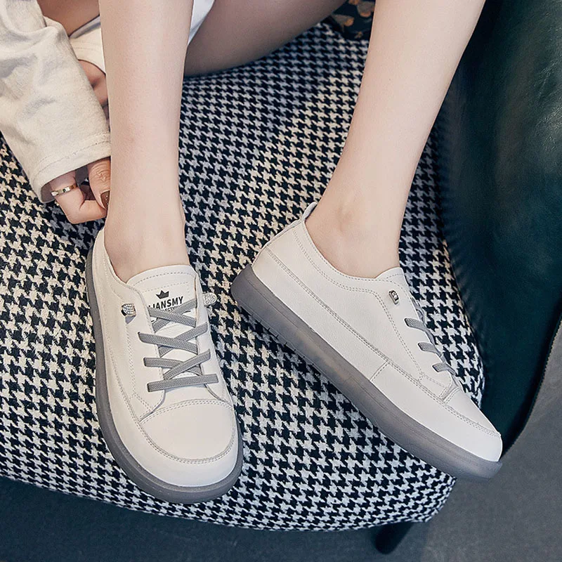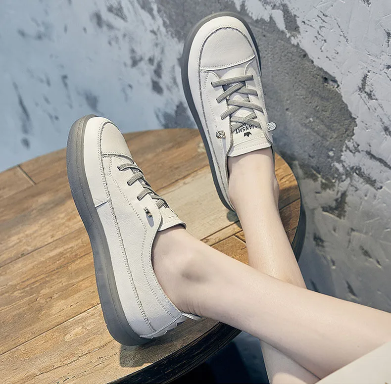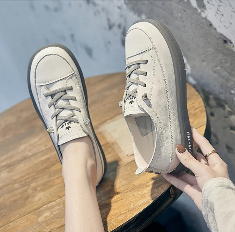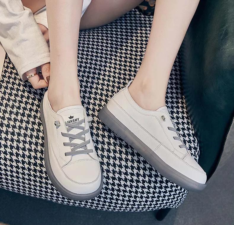 Кроссовки женские из коровьей кожи, на мягкой подошве, сшитые, на п...