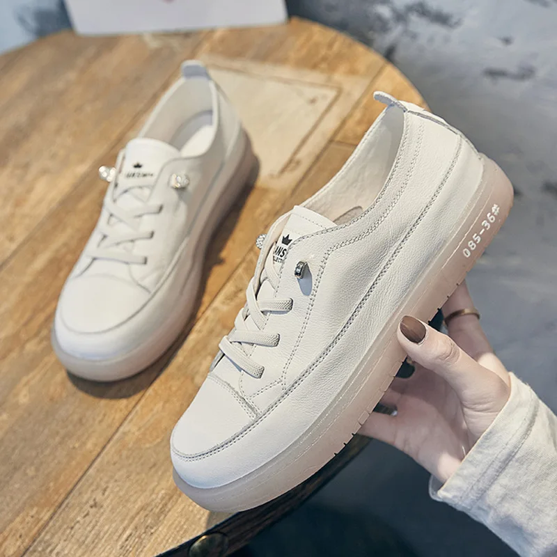 Кеды CXJYWMJL женские из воловьей кожи, маленькие белые кроссовки, повседневная обувь на плоской подошве, натуральная кожа, на вулканизированной подошве, весна