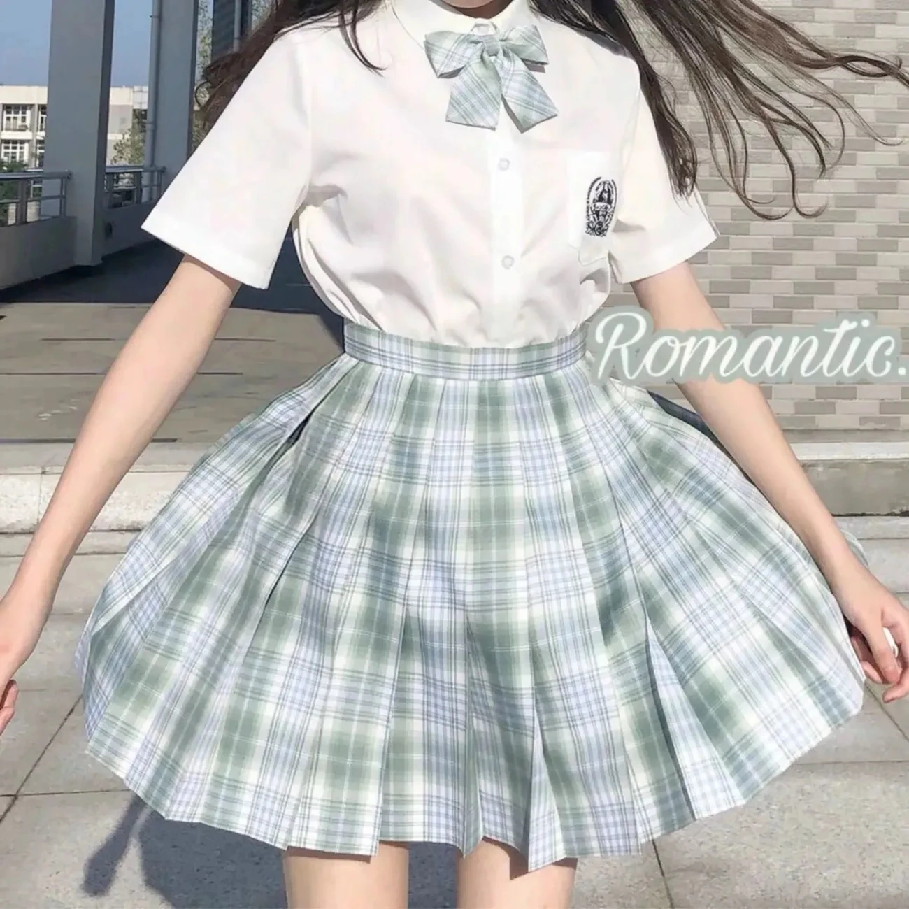Японские школьные плиссированные юбки с высокой талией, летние женские юбки, милые женские Юбки JK, шикарные зеленые клетчатые мини-юбки для студентов