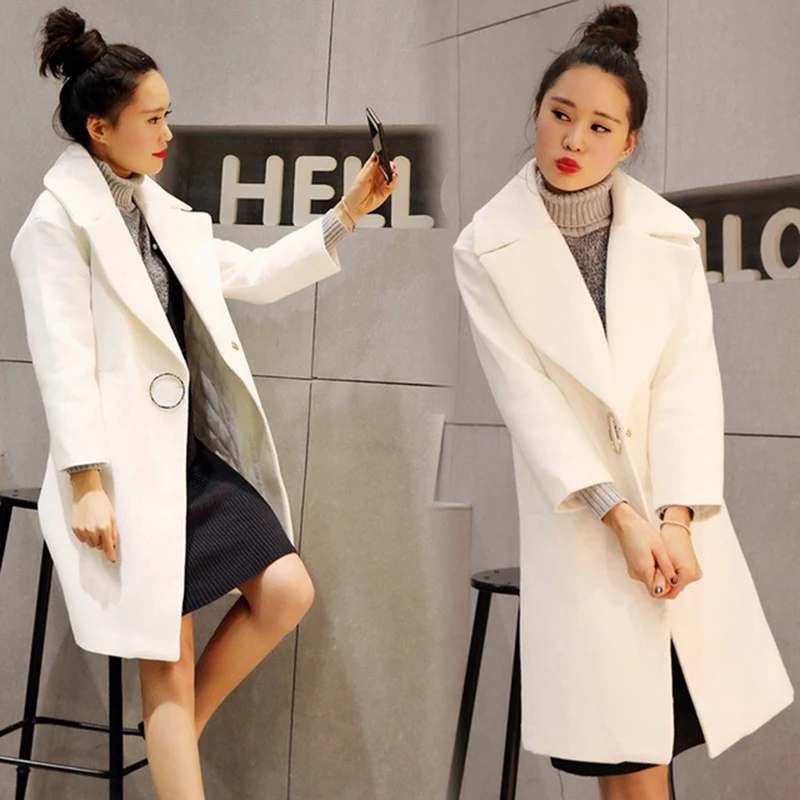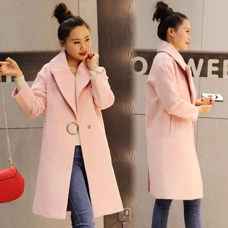 Новинка, зимнее длинное тонкое пальто, женская теплая шерстяная парка, пальто, куртка в Корейском стиле, розовая, белая верхняя одежда свободного покроя с длинными рукавами