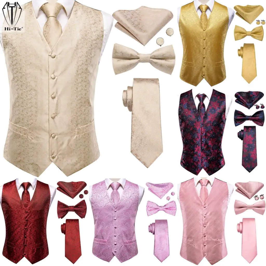 Hi-Tie бренд шелковый мужской s жилет Красный Синий Зеленый Золотой жилет с галстуком галстук-бабочка платок запонки набор талии куртка для мужчин Свадебный офис