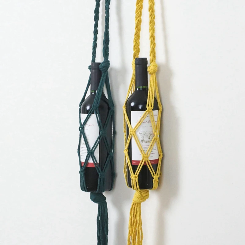 Макраме держатель для винных бутылок Бохо сумка для бутылок для хра...