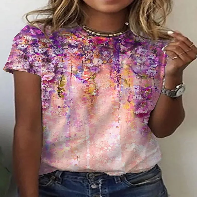 Женская футболка с 3D-принтом одуванчика и круглым вырезом, женские модные топы из полиэстера, новинка 2022