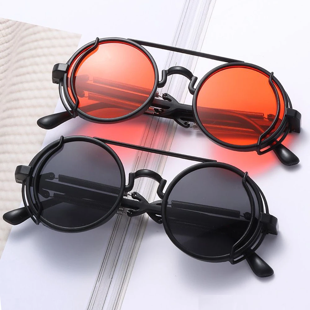 Модные модные солнцезащитные очки с двойной пружиной в стиле панк Круглые Солнцезащитные очки мужские очки солнцезащитные очки в стиле стимпанк