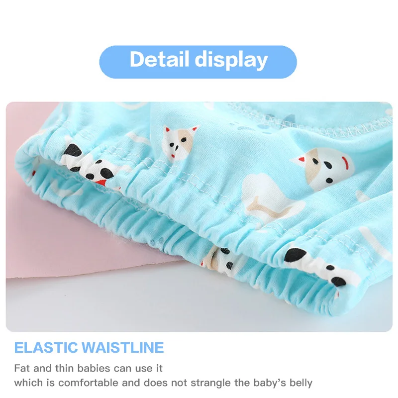 1. Стиль: милые детские подгузники для новорожденных; Моющиеся тканевые подгузники; Многоразовые тренировочные штаны; Трусики для малышей; Детские подгузники; Трусики для подгузников2. Материал: хлопок3. Размер: SКомплекты одежды для детей6-9 кг ребенок, мКомплекты одежды для детей9-11 кг детские, LКомплекты одежды для детей11-15 кг, XLКомплекты одежды для детей15-18 кг размера вашего ребенка;4. Функция:A. PНачтите подгузникиЭто маленькие трусики, которые помогут Вашему малышу от подгузников до обучения ходить в туалет, когда ребенок надевает обучающие Штаны, если ребенок писает в штаны, будет ощущение мокрой. Ребенок будет чувствовать себя некомфортно и призовет родителей снять штаны;B. Со временем Ваш ребенок будет знать о желании пописаться и снимет штаны. Ваш ребенок успешно завершит переход от подгузника к туалету и избавится от подгузника;