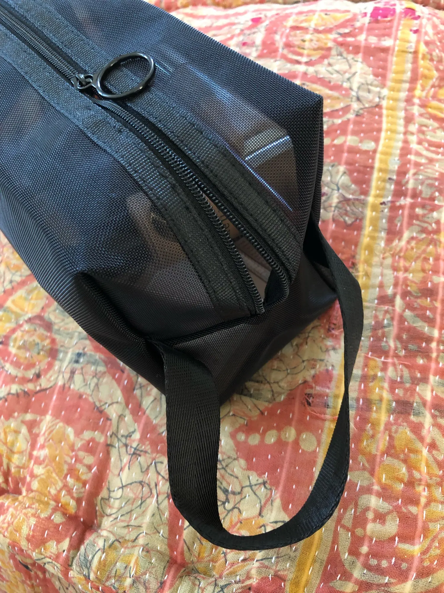 очень удобная приятная с ручка можно повесить. для ванных принадлежностей если где-то в душ нужно пойти очень удобное дорожное сумочка спасибо продавцу быстрая доставка