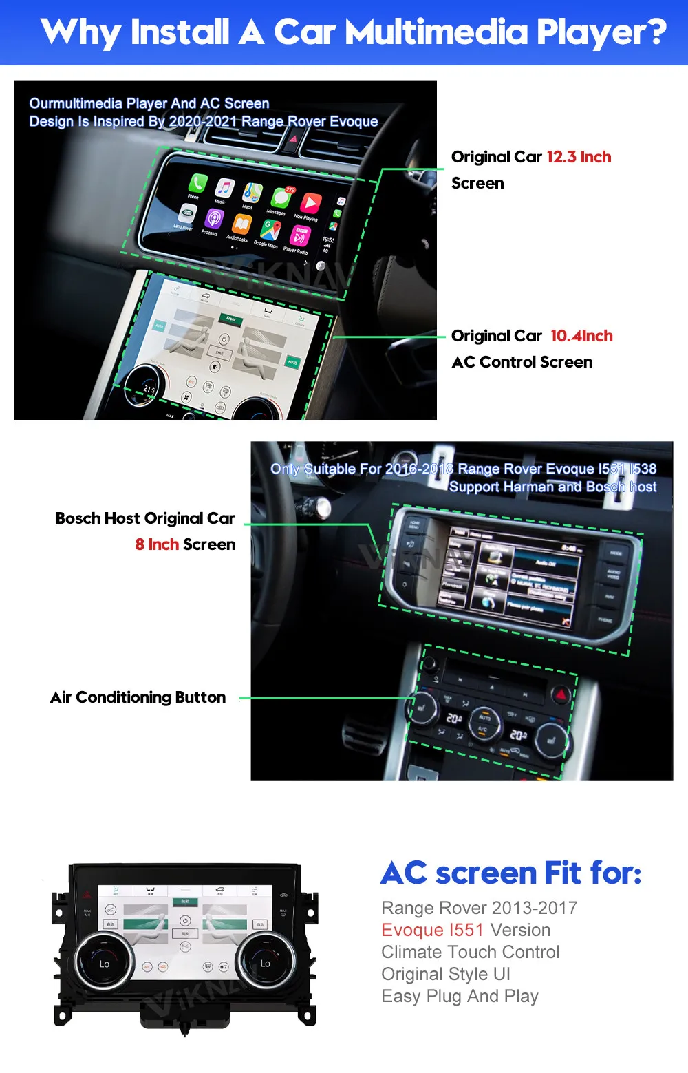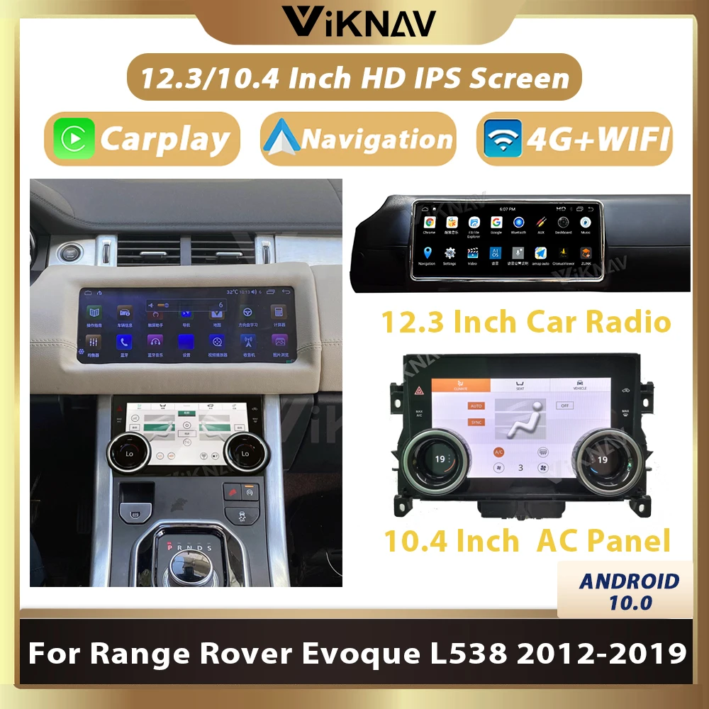 Автомобильная стереомагнитола 12,3 дюйма на Android для Land Rover Range Rover Evoque 2012-2019 с сенсорным экраном и платой управления кондиционером