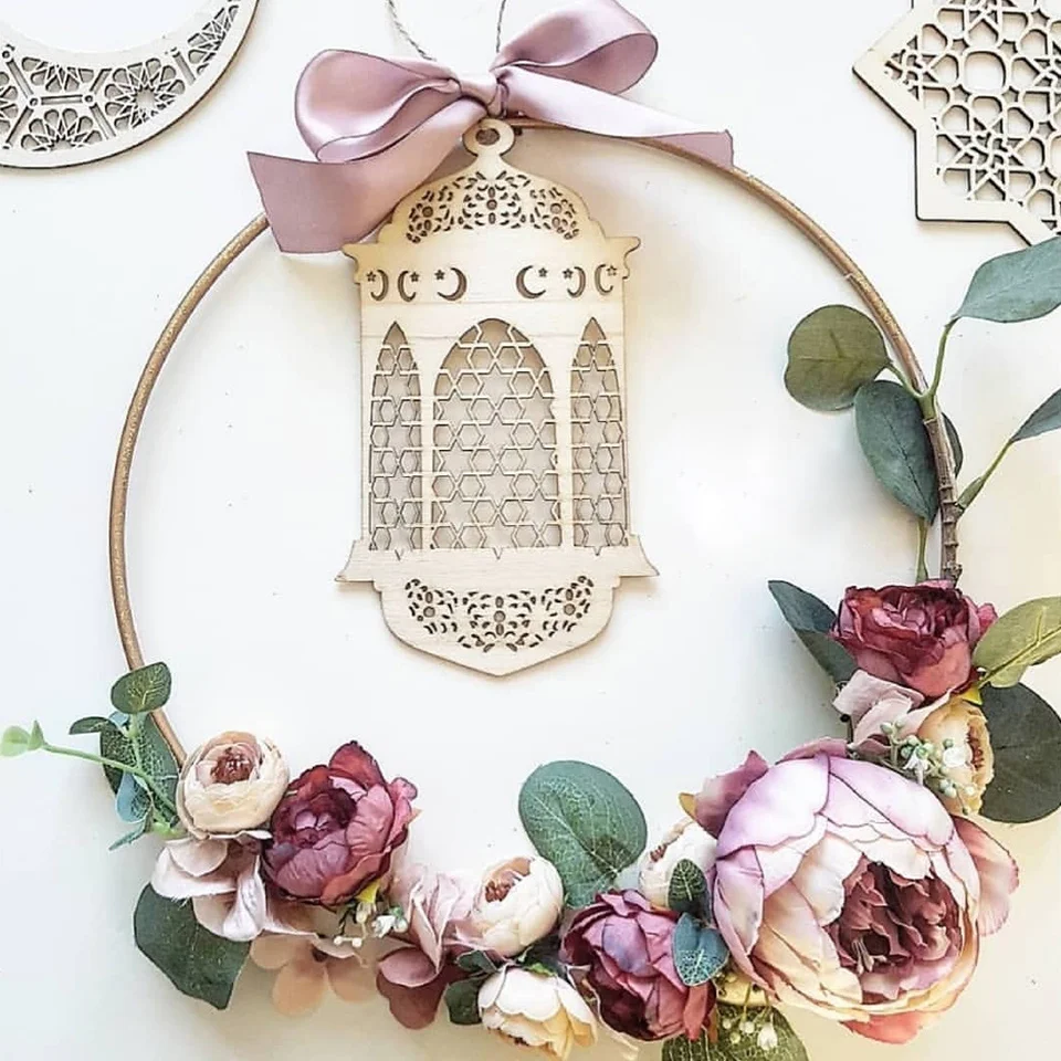 Деревянный вишеный Мубарак, украшение для Рамадана, Kareem, сделай сам, венок, поставка, металлический обруч, кольцо, венок, исламские вечерние украшения
