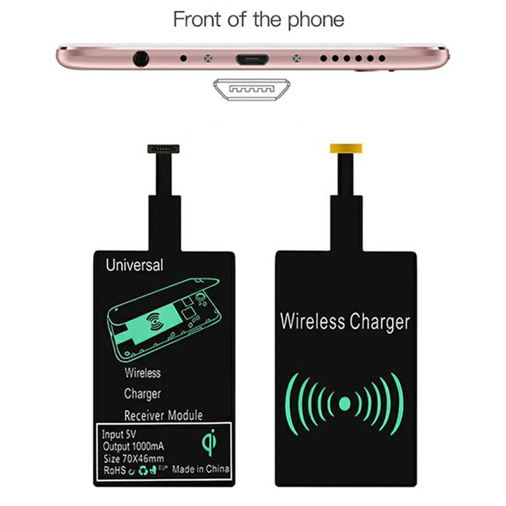 Qi Беспроводное зарядное устройство, приемник, универсальный адаптер для зарядки, поддержка светодиодного микро USB типа C для iPhone 5 6 7 Android, индукционный приемник