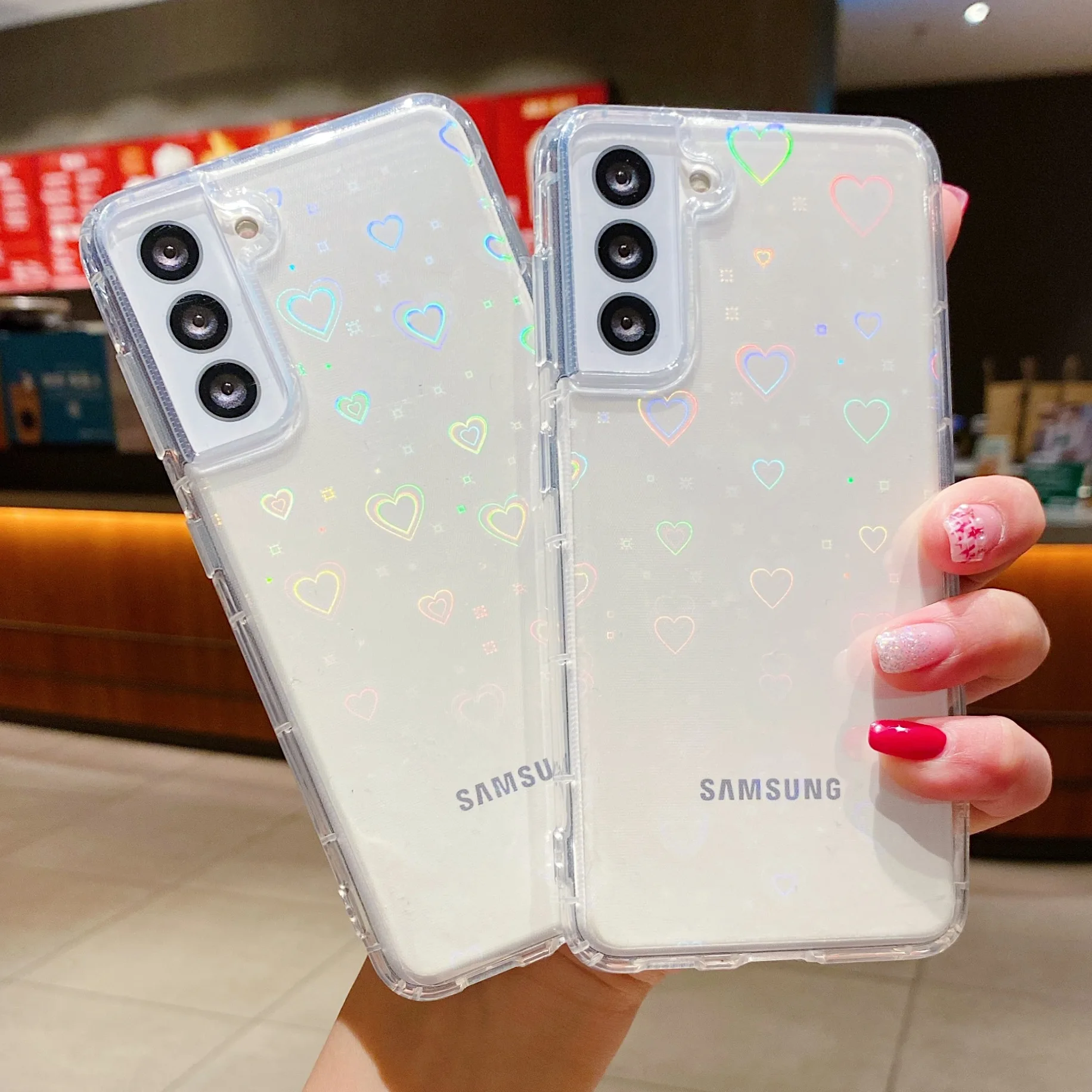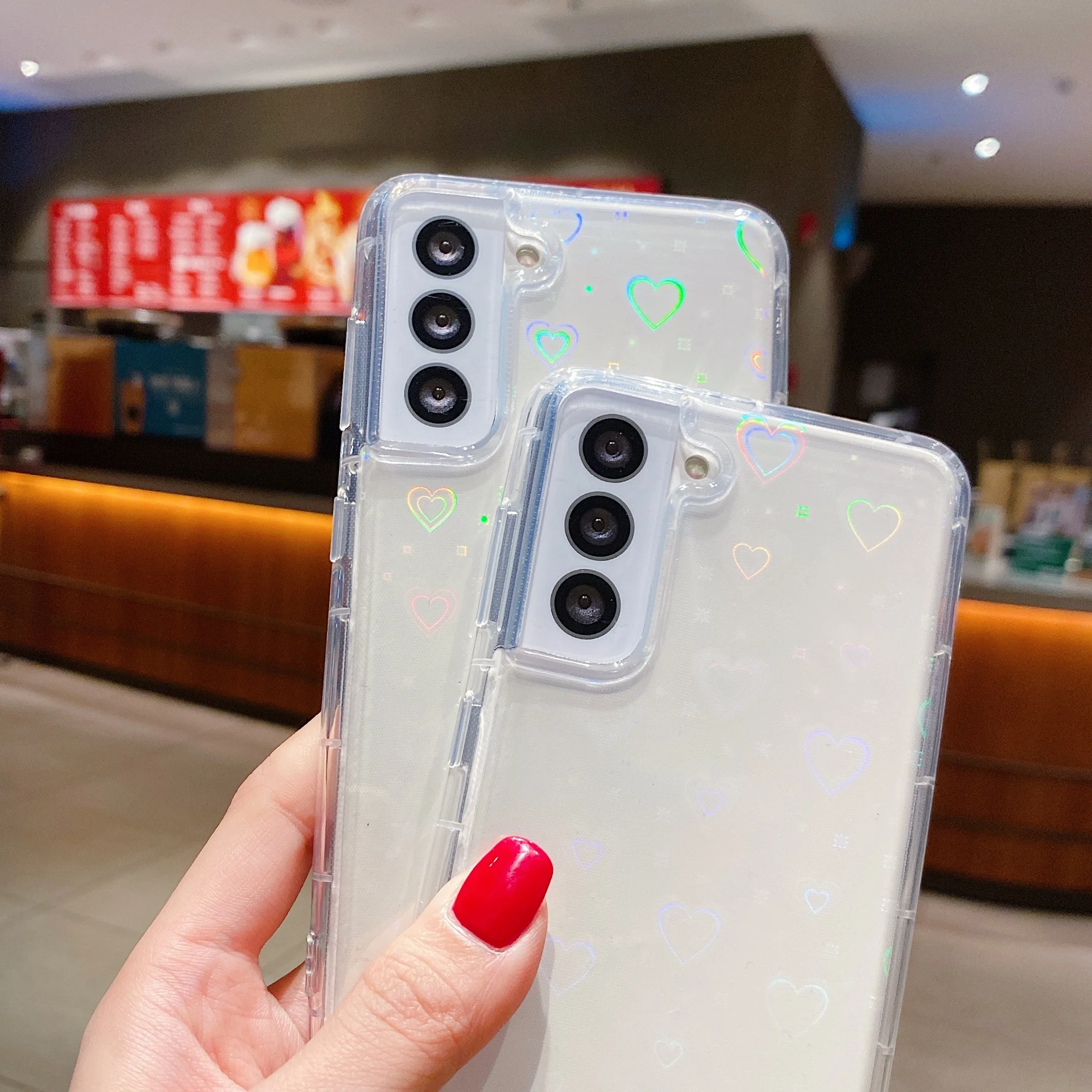 Mobile Phone Case 2For Samsung Galaxy A21S Gradient Laser Love Heart Phone Case