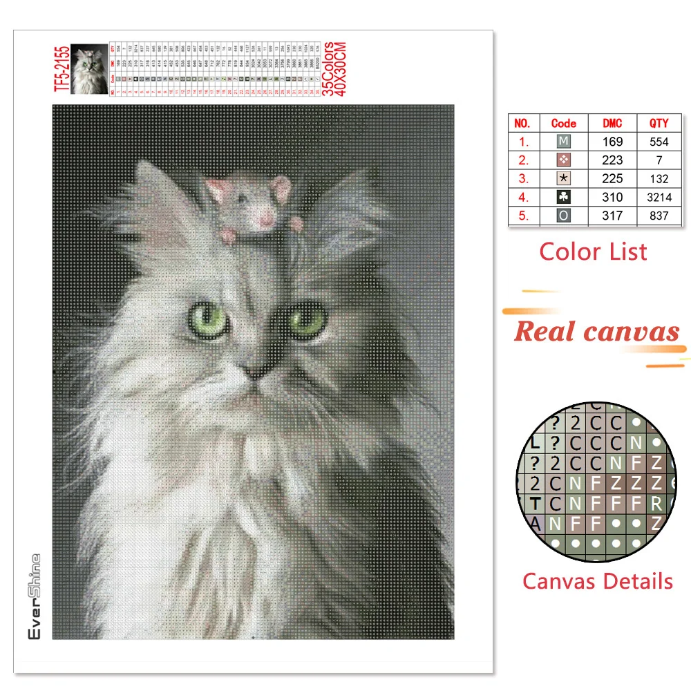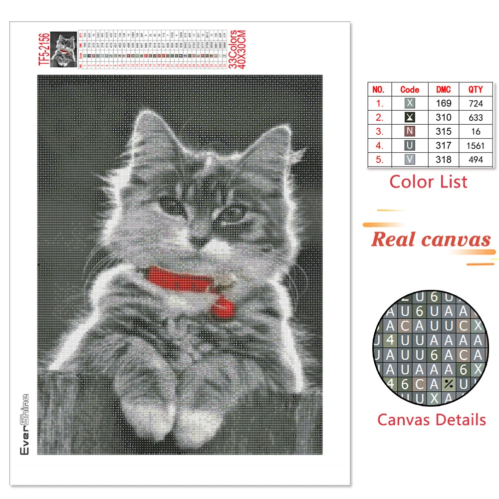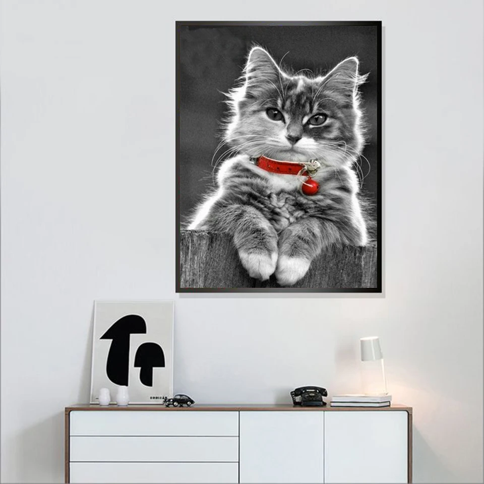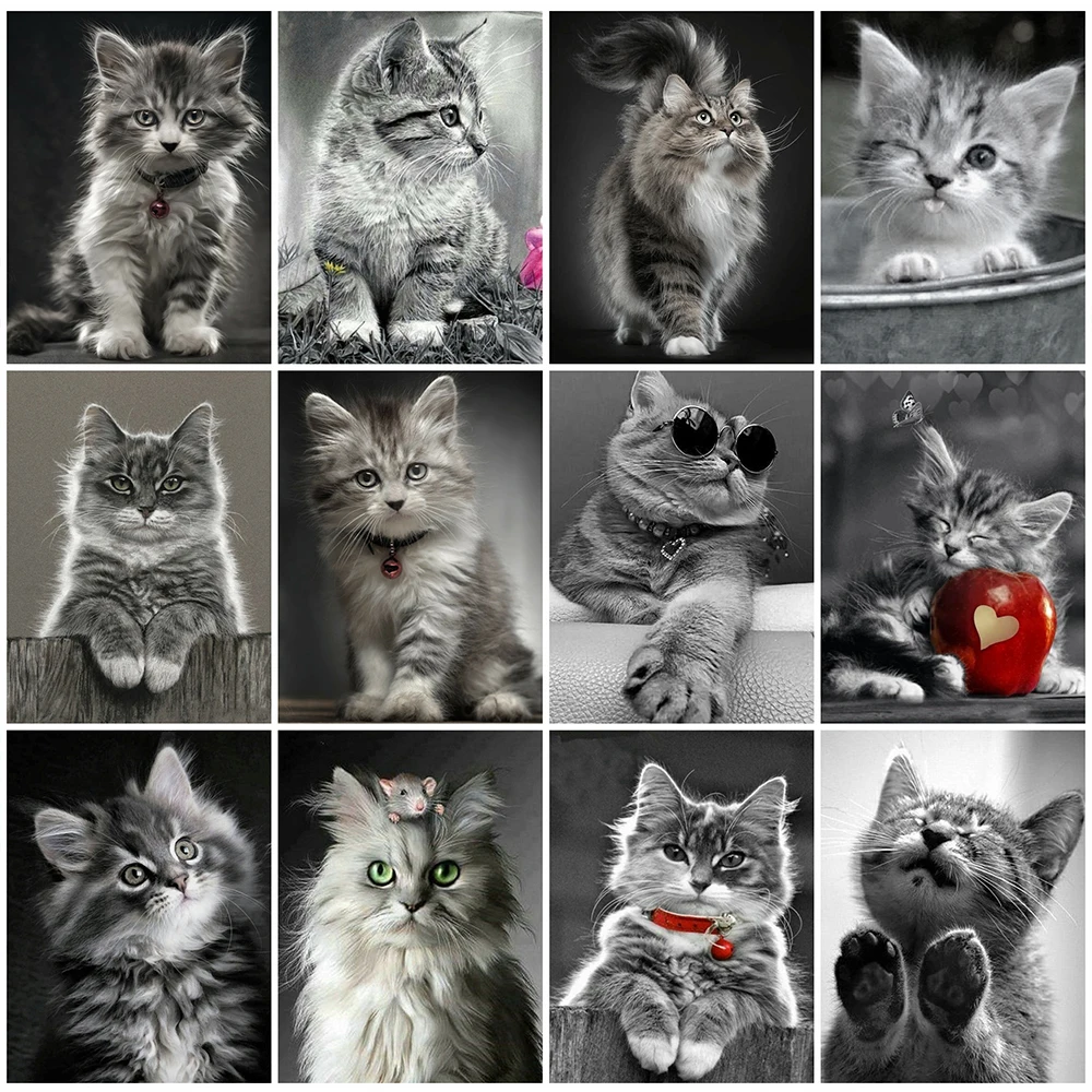 EverShine Алмазная мозаика в виде кошки, полноразмерная картина, алмазная вышивка, черно-белая картина, бриллиантовая картина ручной работы, хобби