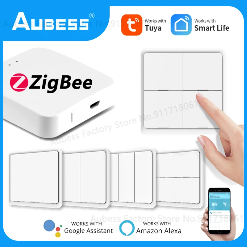 Выключатель настенный AUBESS Tuya Zigbee, 1234-кнопочный, с поддержкой Alexa и Google Assistant