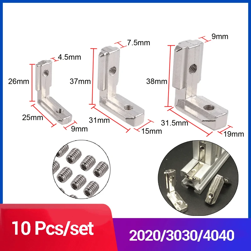 10 шт. Т-образный внутренний угловой разъем L-образной формы, шарнирный кронштейн 2020 3030 4040 с винтами, алюминиевый профиль