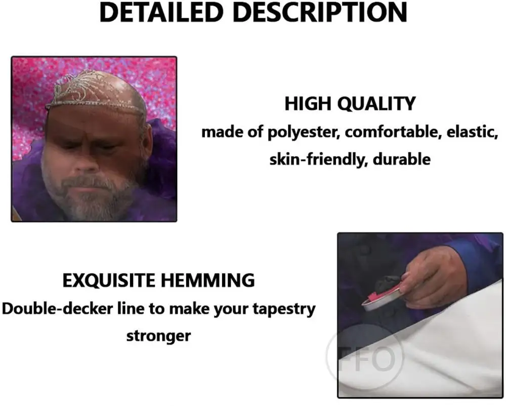 1. Наименование товара: гобелен2. Премиум Материал: 100% полиэфирная ткань высшего качества, мягкая и приятная для кожи3. Уникальный дизайн: усовершенствованная технология печати HD, изображение четко4. Аксессуары: оснащен 3 зажимами и 3 немаркированными Крючки-гвозди5. Широкое применение: подвесное, настенное искусство, Украшение стен, покрывало в стиле хиппи, Пляжное/пикничное одеяло, скатерть, коврик для йоги, разделитель комнаты, потолочное украшение, занавеска или любое украшение для дома6. Удовлетворительное обслуживание: FFO стремится предоставить всем клиентам продукцию высокого качества и удовлетворительный опыт покупок. Если есть какие-либо проблемы с продуктом, вы можете связаться со службой поддержки клиентов, мы обязательно постараемся решить проблему для вас и сделать вас удовлетворенными