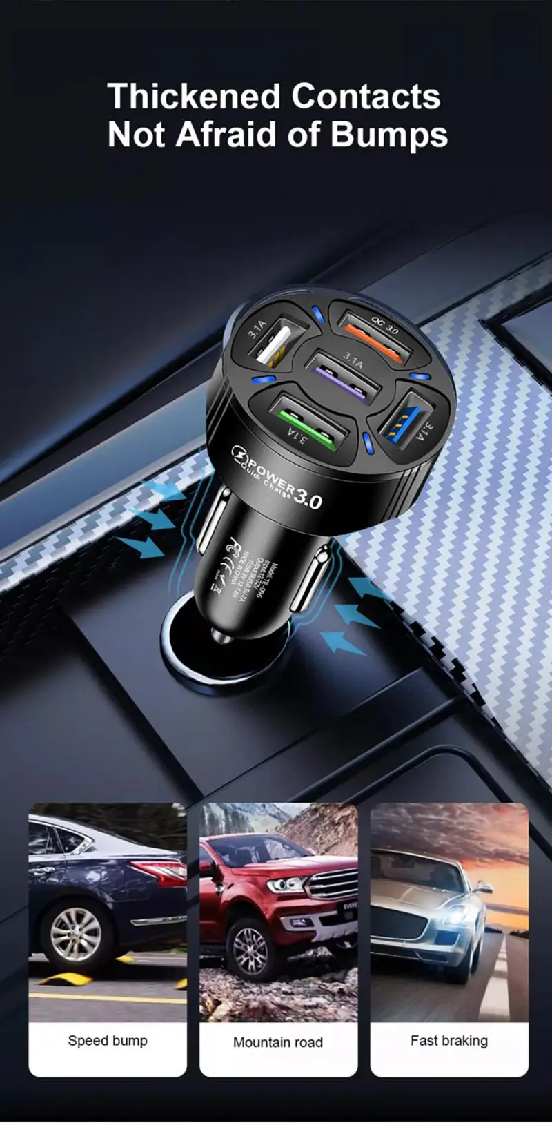 Feature 5carregador veicular, cargador usb para auto, chargeur voiture
