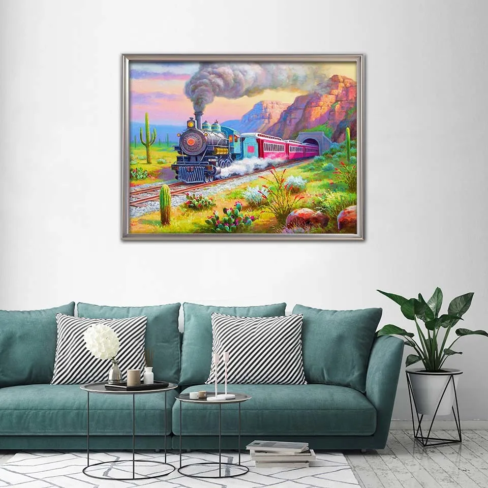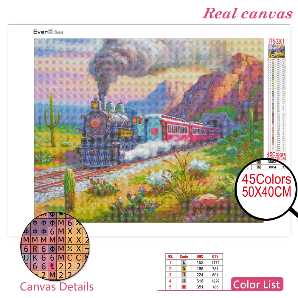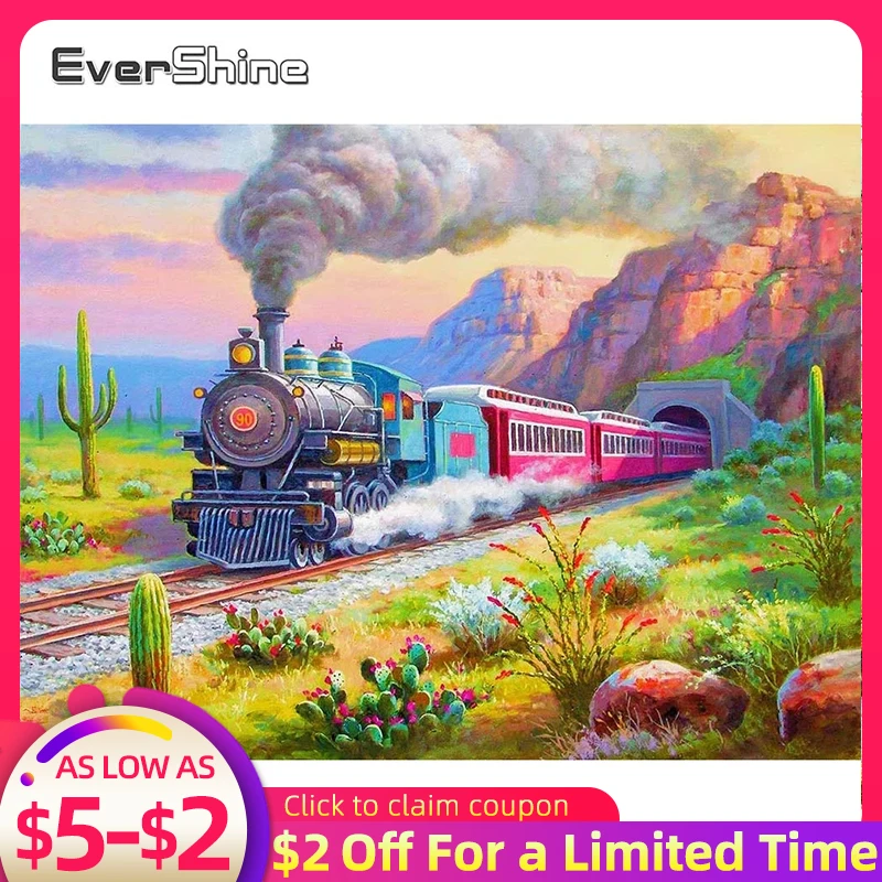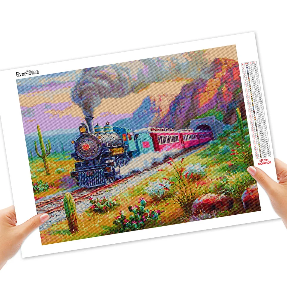 Алмазная вышивка EverShine, картина с поездом, алмазная живопись, пейзаж, наборы для вышивки крестиком 5D, полноразмерная мозаика С КАКТУСОМ, домашний декор