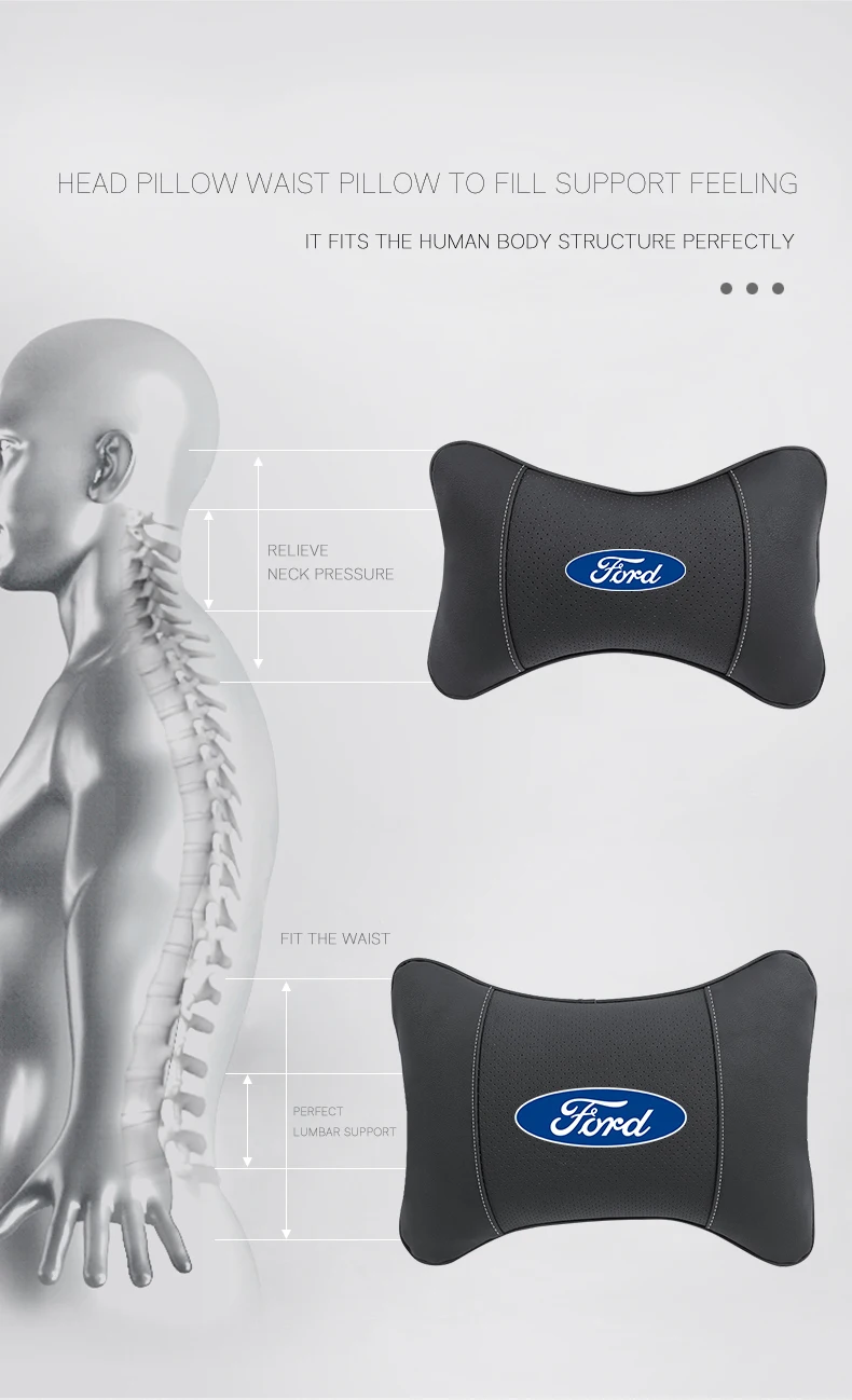 Подушки для шеи автомобиля из искусственной кожи с эффектом памяти подголовник поясничная подушка для Ford Fiesta Focus Ranger Explorer Mondeo Escort Falcon Flex S-MAX Kuga Mustang