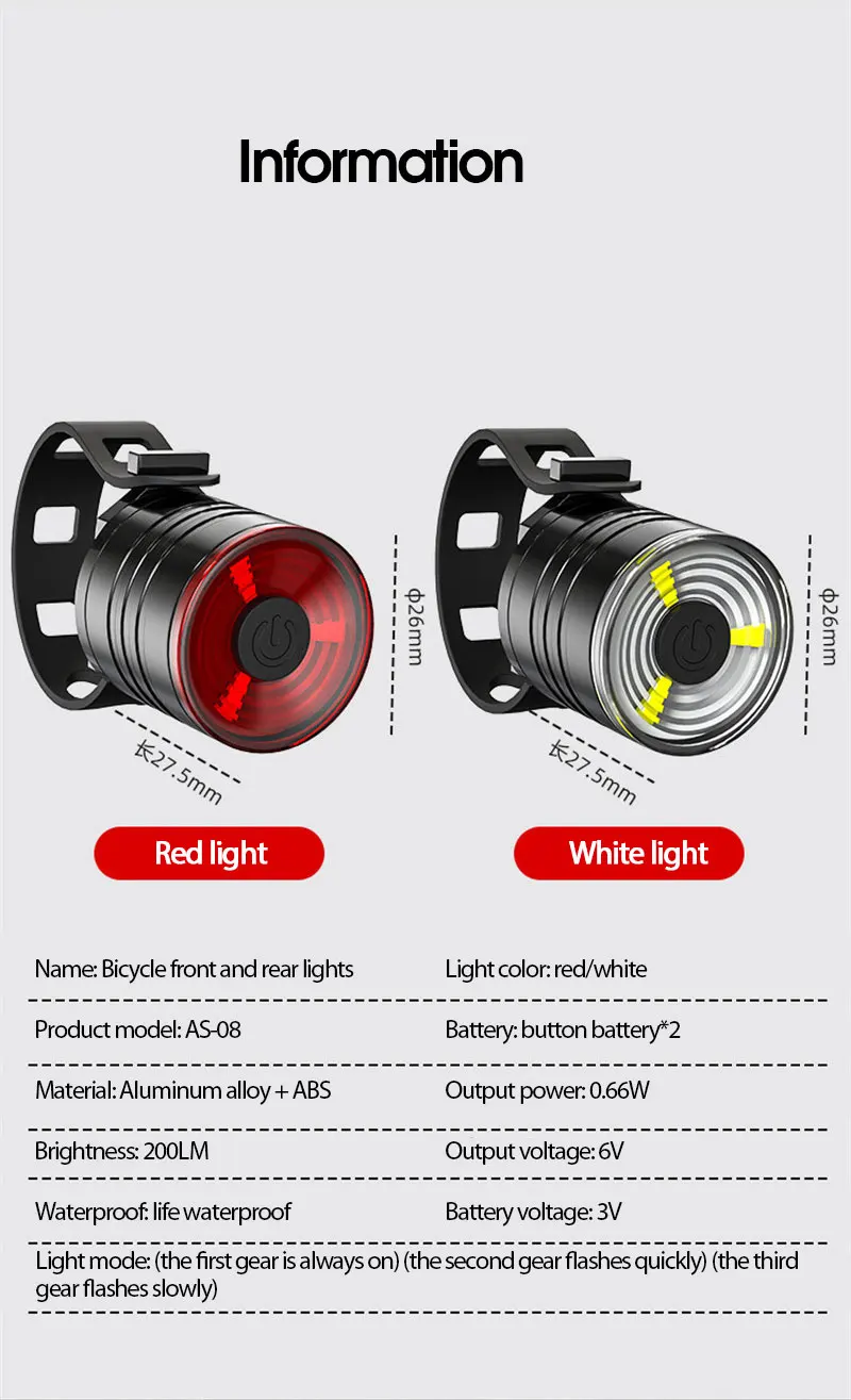 Product nameBicycle front and rear lights