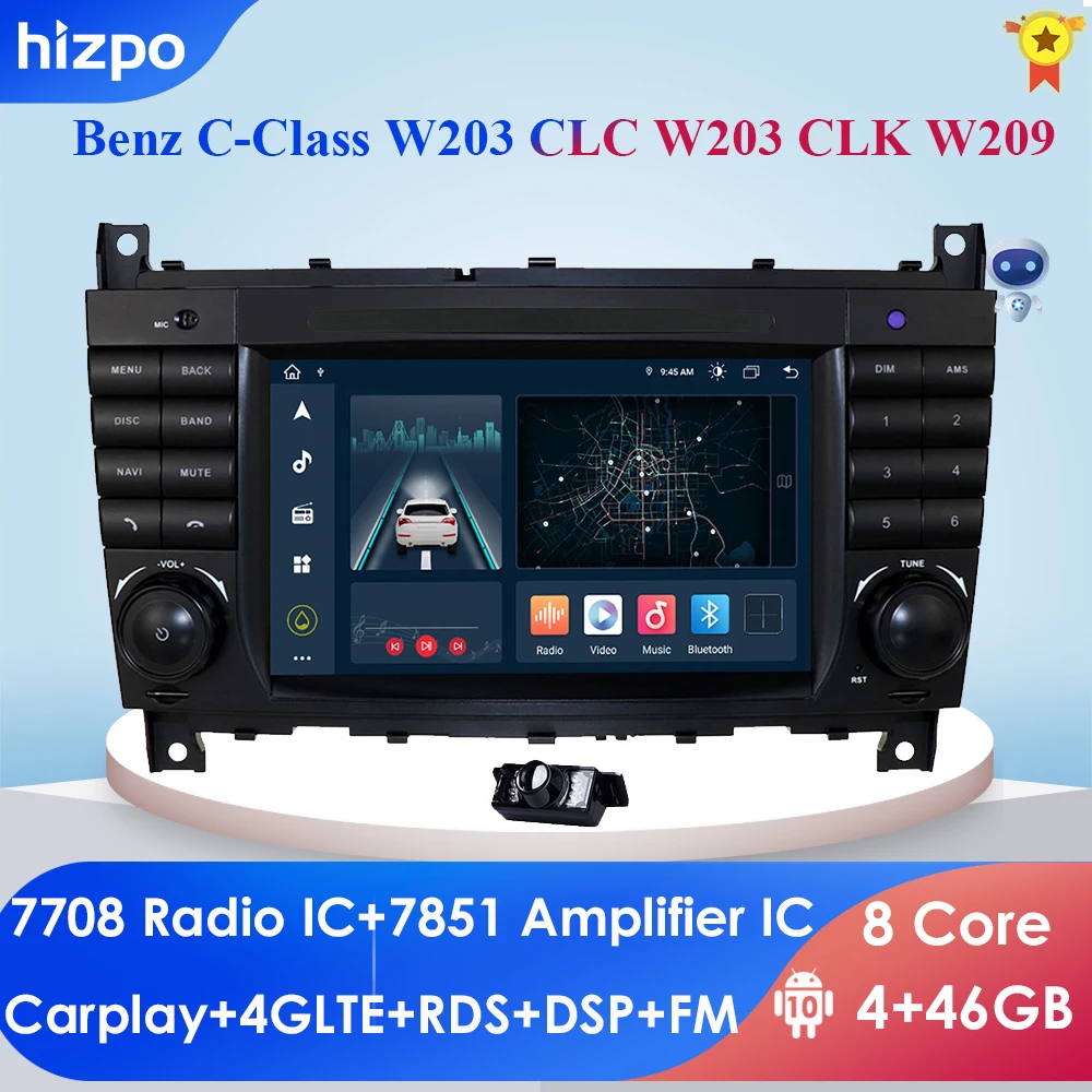 Carplay 7 ''Android 10 Автомобильный мультимедийный плеер авторадио GPS для Mercedes Benz CLK Class W209 CLC W203 Радио Навигация стерео BT