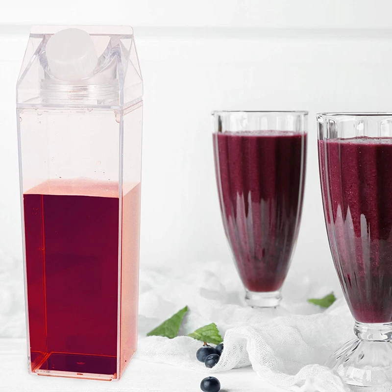 Картонная бутылка для молока, прозрачные квадратные бутылки для молока, портативная пластиковая прозрачная бутылка для сока для спорта на открытом воздухе, путешествий