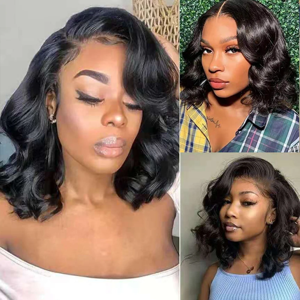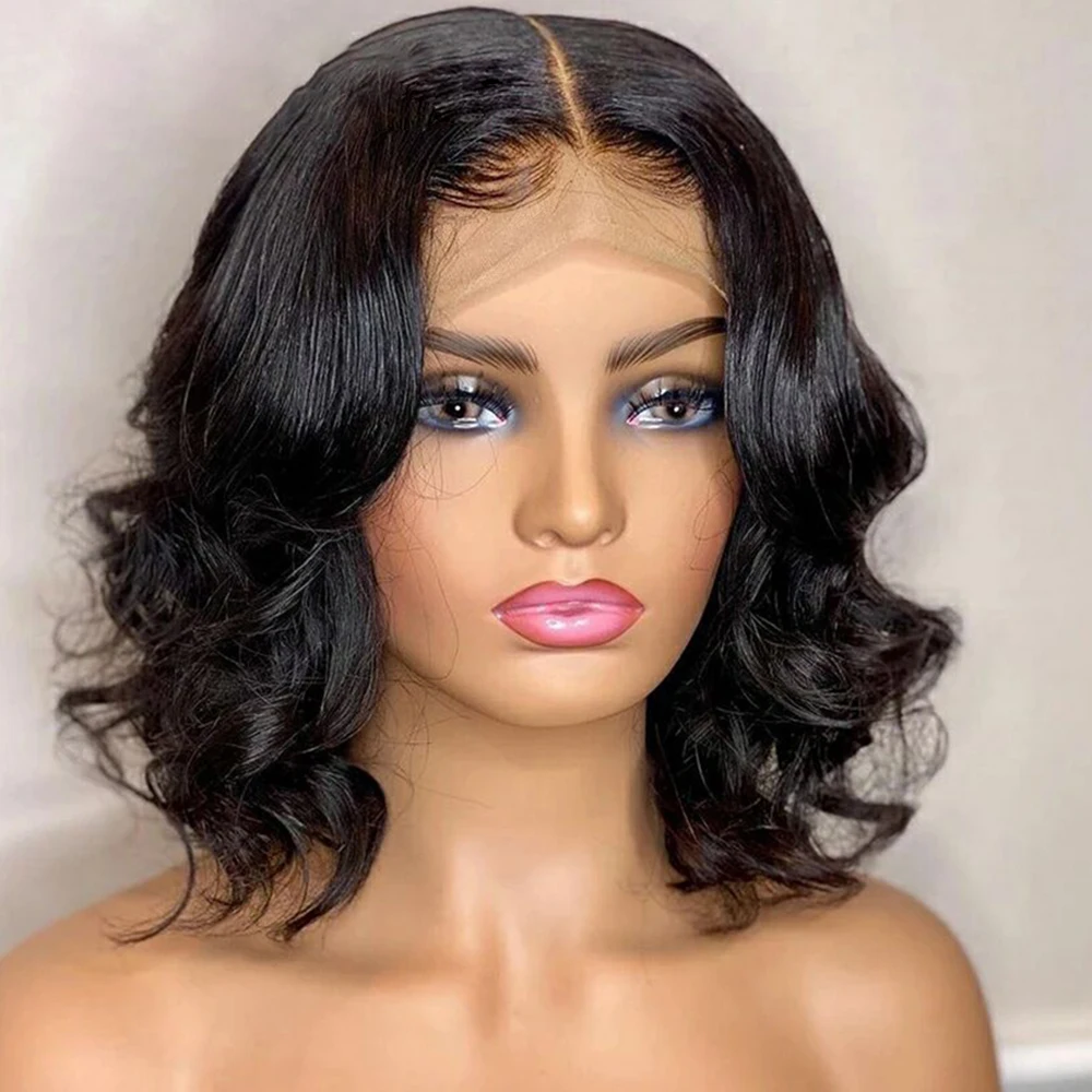 Короткие парики с натуральными волнистыми волосами, бесклеевые парики на сетке для черных женщин, предварительно выщипанные 10-14 дюймов, волнистые парики на сетке