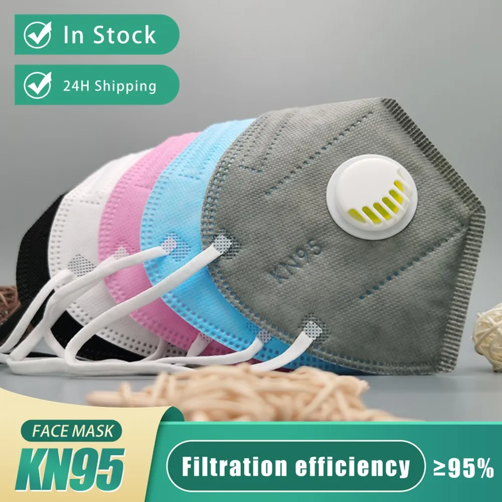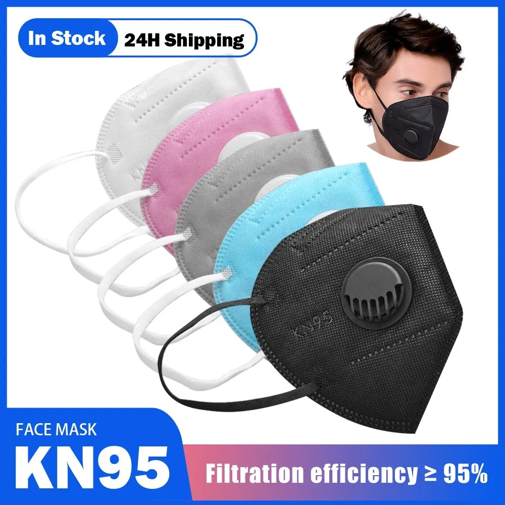 10 шт. kn95 маска для лица с дыхательным клапаном 5-слойные противо...