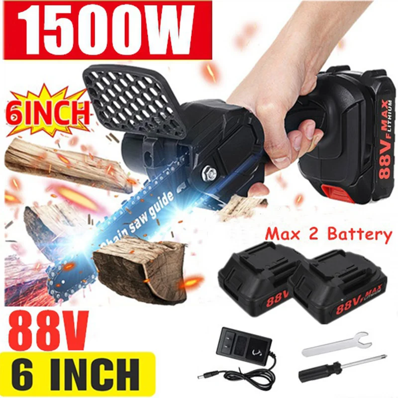 1500 Вт 6-дюймовый съемный миниатюрный электроприбор для обрезки цепной пилы 88 в литиевая батарея деревообрабатывающие электроинструменты для садового резака ветвей дерева