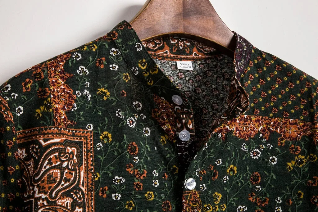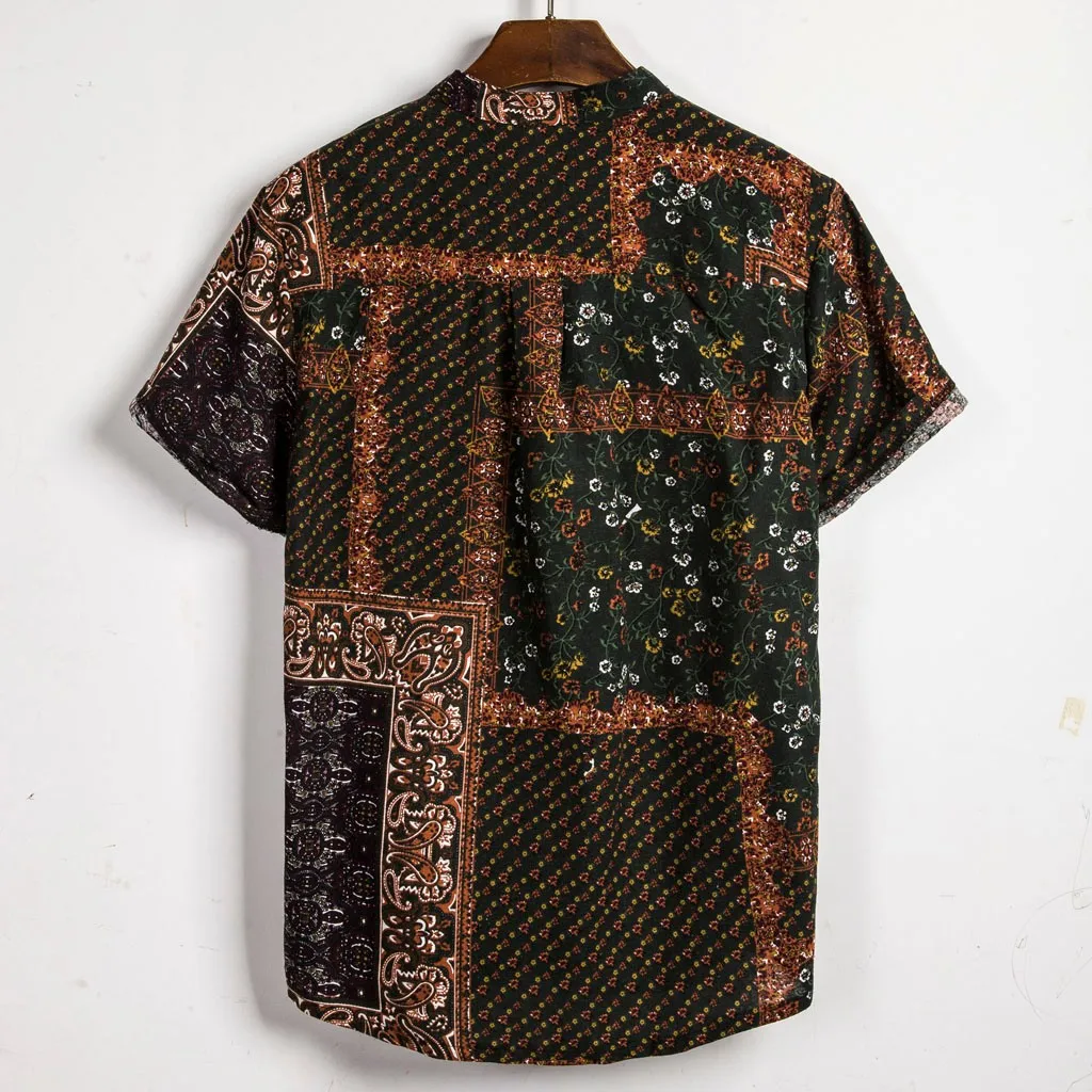 Мужские футболки в гавайском стиле, новые этнические повседневные хлопковые льняные рубашки с коротким рукавом и принтом, летняя мужская модная блузка, рубашки